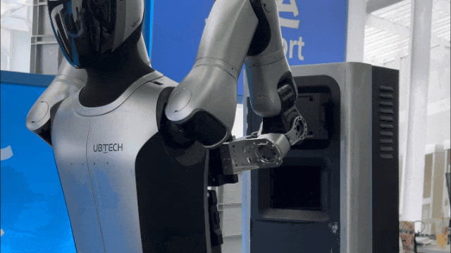 ▲最新一代优必选工业版人形机器人Walker S2通过自主换电系统可实现24小时不间断工作。
