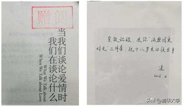 上课铃响,PPT翻过,一本书的扉页照片出现在同学们眼前。书是薛亘华从学校图书馆里偶然借阅的《当我们谈论爱情时我们在谈论什么》,扉页上有一排小字:“紫微姑娘,送你‘消磨周末时光’三件套,祝十八岁生日快乐!”下面是留言者的签名“湛”,日期是2016年2月。同时,前一页上还有“赠阅”印章。