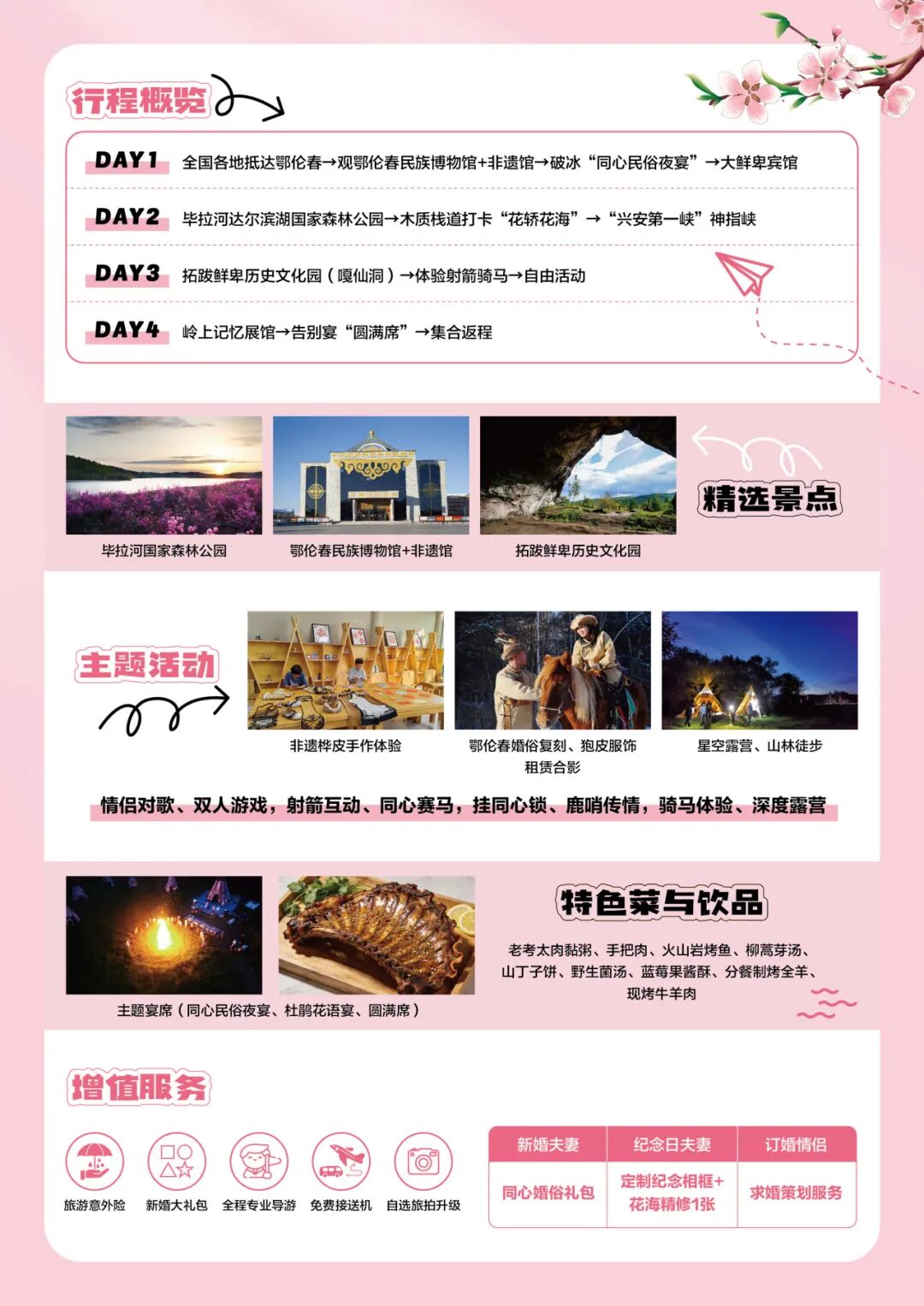 当天,鄂伦春文旅投与天恒商旅联合发布了兴安岭上“甜蜜路线”春季篇,路线串联起兴安杜鹃花海、嘎仙洞融合之路、林海雪原徒步、山珍特色美食、邂逅浪漫烟花等特色场景,将婚恋消费文化、生态旅游深度融合,成为西城区“甜蜜经济”融合发展的生动注脚。