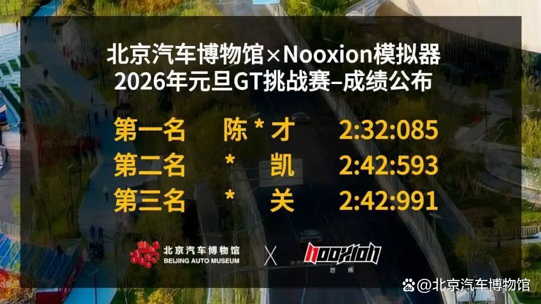 近日,由北京汽车博物馆与Nooxion联合呈现的2026年元旦GT挑战赛圆满收官。这场融合汽车文化传承与专业模拟竞速的跨界活动,用极致仿真的赛道体验、紧张刺激的组别对决,为所有赛车爱好者留下了难忘的速度记忆。