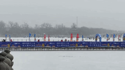 冰面上穿梭的身影、红墙金瓦的背景、
