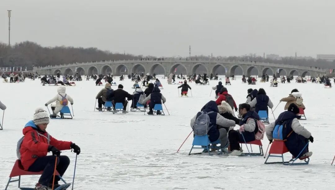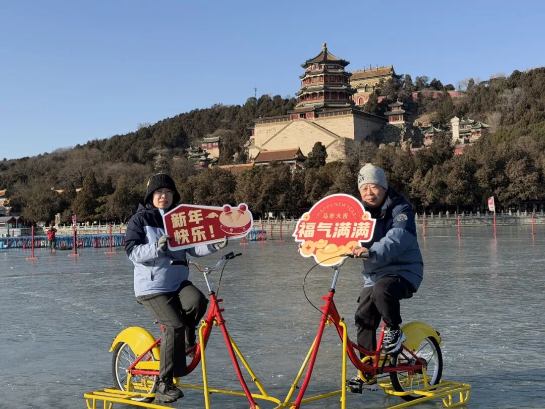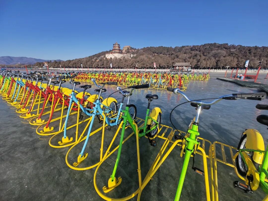 值得一提的是,今年场内的近千辆冰上自行车已全部焕新。新车结构更稳固,操控性与制动性能增强,配色明快和谐,与园林环境相得益彰,为游客提供更安全、更具美感的冰上驰骋体验。