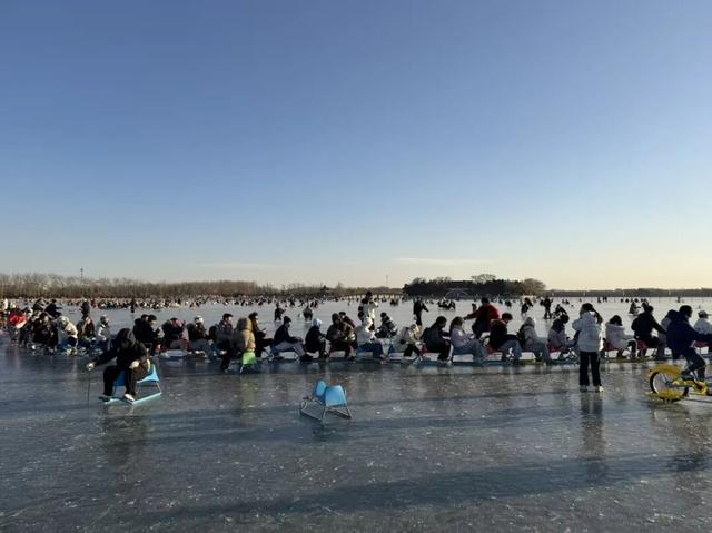 现场配备单人冰车、双人冰车及单人冰上自行车三类传统冰上设施,供游客选择。辽阔的天然冰面与万寿山、佛香阁等古典建筑遥相呼应,形成独具韵味的皇家园林冰雪画卷,让游客在滑行嬉戏间,既能感受传统冰上项目的乐趣,亦能领略冬日户外运动的别样生机。