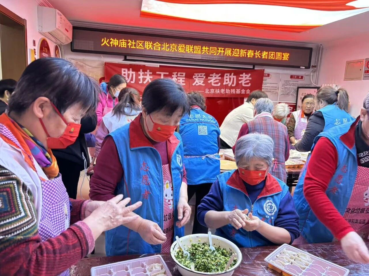 在火神庙社区,一场“迎新春长者团圆宴”热闹开场。社区联合北京扶老助残基金会、北京市爱联盟志愿服务队,以饺为媒,搭建起关爱老年群体的爱心桥梁。