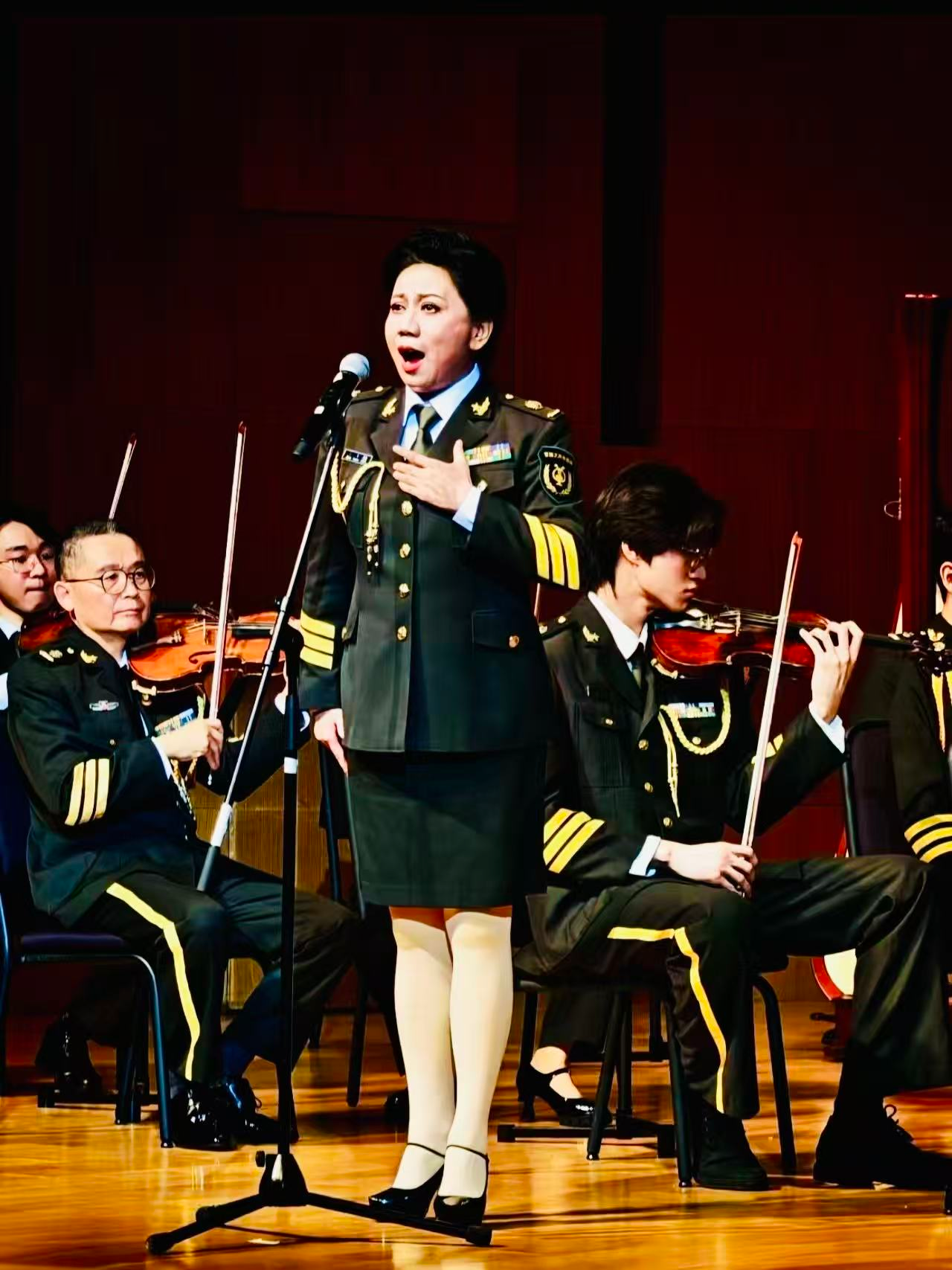 从军营哨所到艺术殿堂,从经典传唱到时代新声,这支承载着使命与挚爱的团队,四百余场演出、五十余场晚会,从绿色军营到边关哨所,从繁华都市到百姓舞台,演出足迹遍及大江南北,长城内外。合唱团曾多次深入解放军三军仪仗队,武警天安门国旗护卫队,共和国礼炮部队,内蒙古军区边防部队等慰问演出,赢得了广大官兵与社会各界的高度赞誉。他们用最真挚的感情,最动情的歌声唱响了对祖国、对人民、对军旅的赤诚赞歌。美丽的夜晚,热情的观众期待着这场穿越时空的军魂对话,在亲切熟悉的旋律中重温岁月峥嵘。