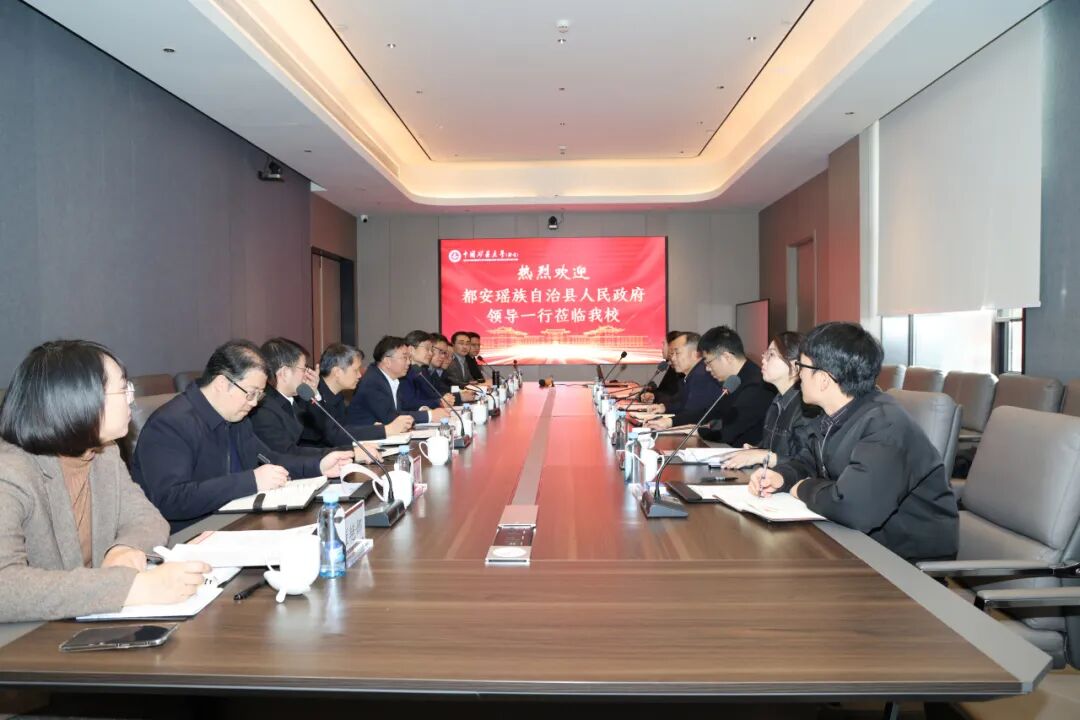 蓝干宁对学校长期以来的倾力帮扶表示衷心感谢。他指出,在党中央的坚强领导和各帮扶单位的共同努力下,都安县成功举办了70周年县庆活动,如期完成“十四五”经济目标,乡村振兴各项事业扎实稳步推进。矿大(北京)的帮扶工作务实深入、成效显著,为都安打赢脱贫攻坚战、有效衔接乡村振兴提供了有力支撑。他表示,当前都安正依托优势碳酸钙资源,积极推动产业转型升级,全力构建百亿元级碳酸钙产业集群。希望双方围绕共建校地科创基金、开展碳酸钙全产业链技术研发与中试、加强教育人才培养等重点领域持续深化协作,促进更多科技成果在都安落地转化,赋能都安经济社会高质量发展。
