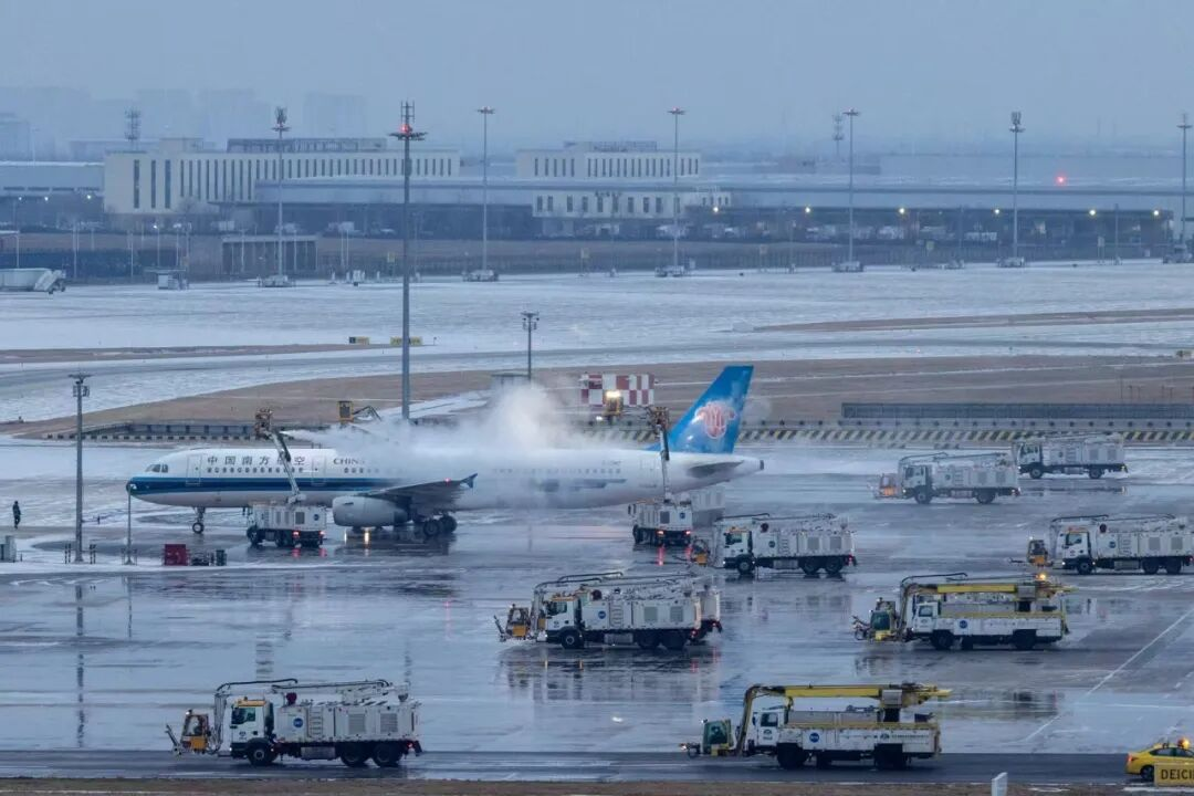 航班保障方面,大兴机场共启用除冰位13个,出动除冰车49辆、除雪车84辆,准备场道除冰液2200吨、融雪剂160吨。有序开展航空器除冰和道面除雪作业,全力确保畅通。