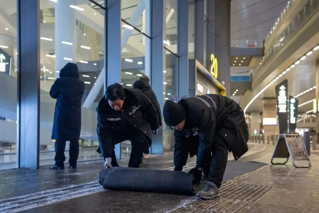 旅客服务方面,大兴机场做好楼前防滑措施和楼内恒温供暖,确保旅客舒适出行。加强旅客问询引导与爱心帮扶,通过楼内广播、小红书线上直播等方式及时发布动态信息。结合航班计划,提高安检资源适配度,加强到港行李监控,商业店面物资充足,致力于让每一位旅客都能“乘兴而来、尽兴而归”。