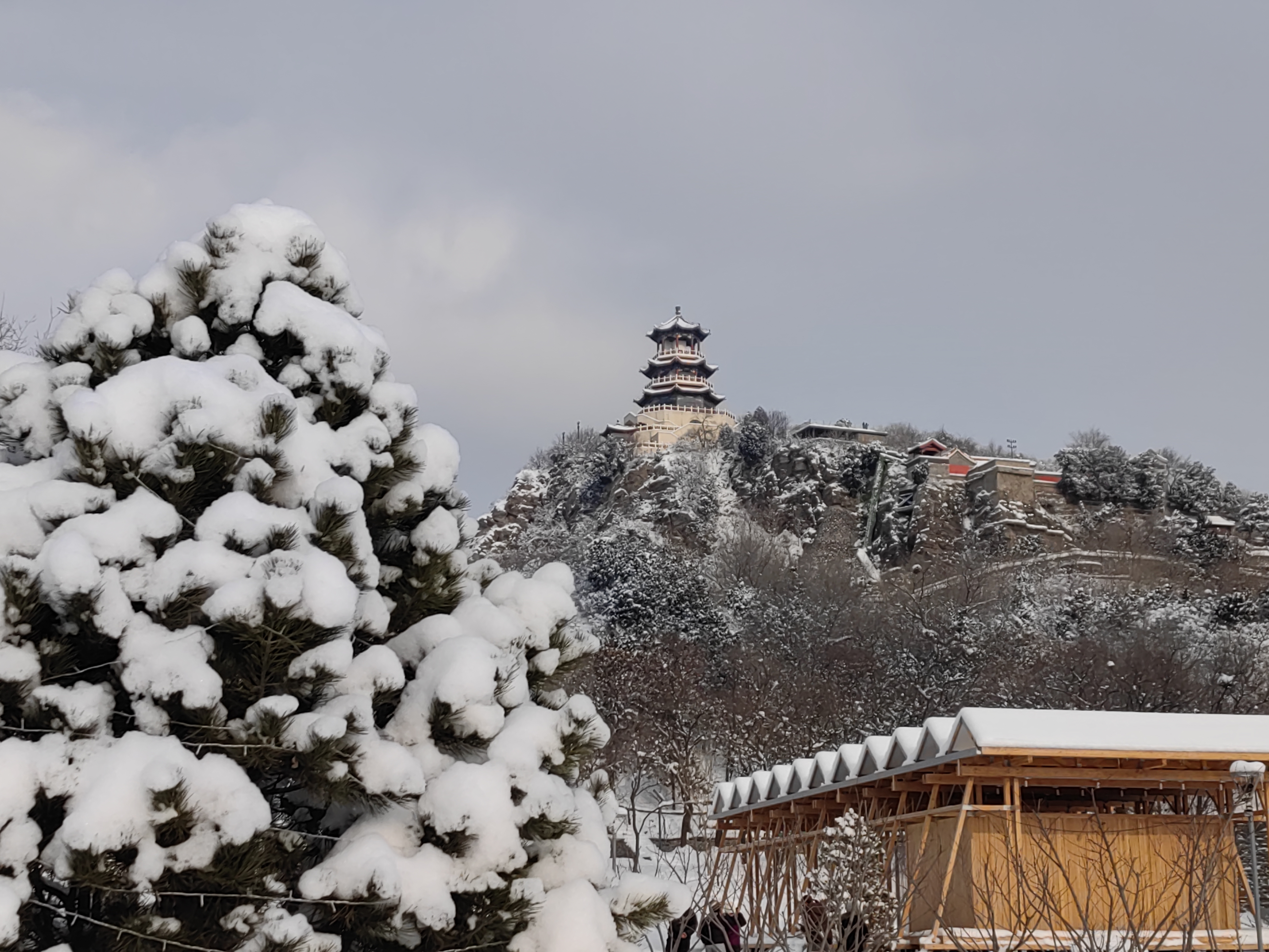 1月18日,永定河畔迎来2026年第一场雪。漫步雪后的河畔,享受玩雪的乐趣,石景山功碑阁的雄奇与河畔木屋的静谧相映成趣,织就一幅冷暖交织的冬日美图。