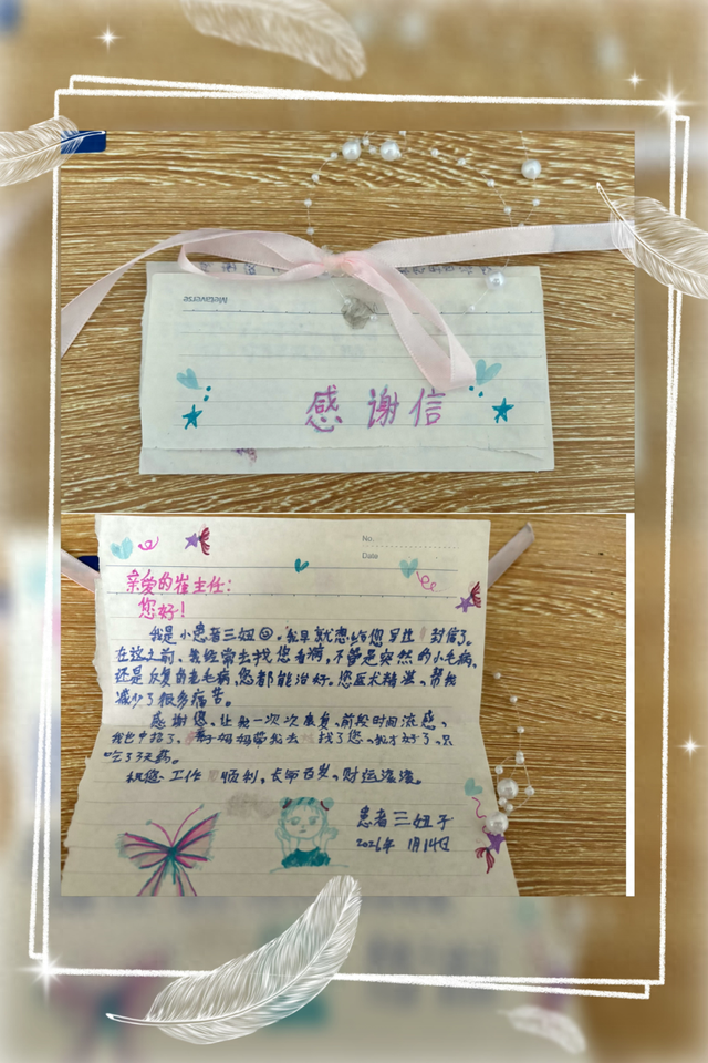 近日,邹平市中医院守正楼二楼治未病科诊室里暖意融融,治未病科副主任崔传峰收到了一份特别的礼物——一封由小学生亲手制作的感谢信。稚嫩的字迹、真诚的话语,满含着孩子对医生的感激与敬佩。
