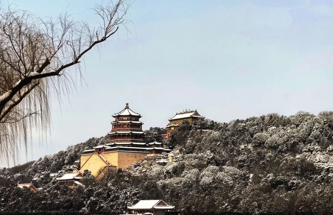 院内“古都春晓——中共中央‘进京赶考之路’颐和园专题展览”还原着当年的历史场景,院外雪景静谧清幽,漫步其间,既能赏“雪覆青松”的自然之美,亦能品革命岁月的红色底蕴,在山水雪景中感受历史与当下的深情共鸣。