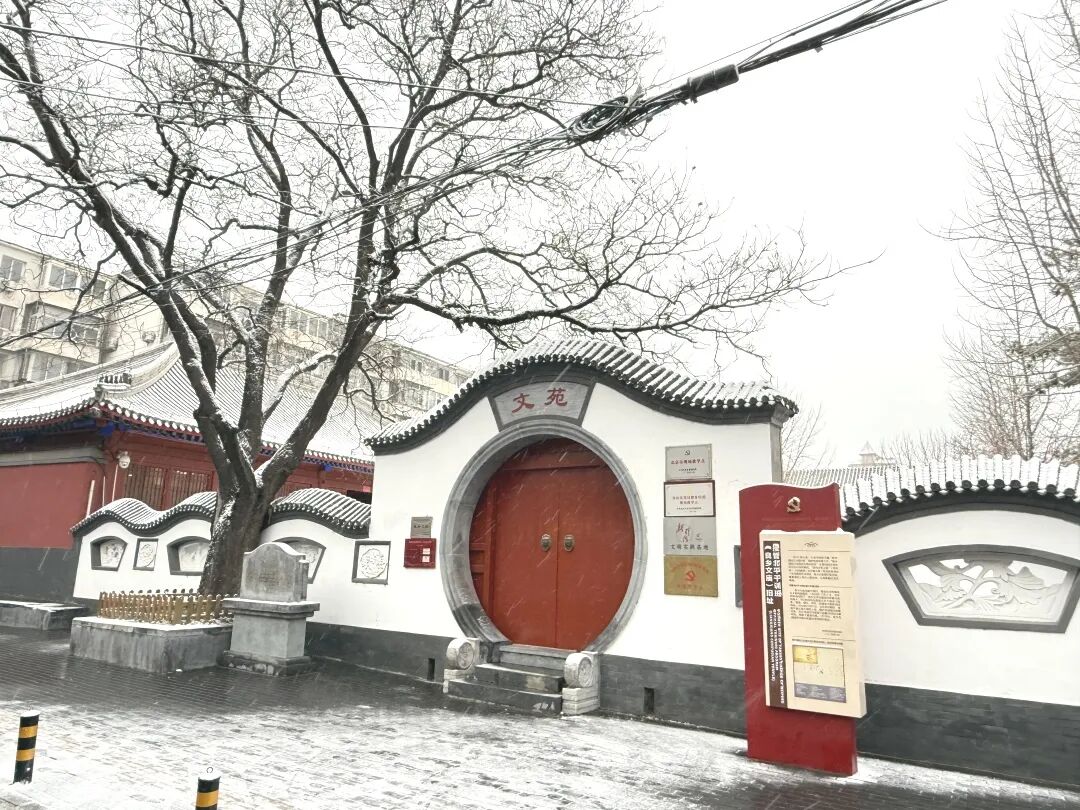 始建于明洪武五年的良乡文庙,既是传承中华文脉的古老学宫,也曾在1948年底至1949年初作为中共北平市委和市军管会驻地,承担2800余名接管干部的系统培训任务,为北平顺利接管与社会平稳过渡筑牢根基。此刻的文庙,皑皑白雪落满整个院落,为这座古朴的学宫披上了一层素净的外衣,天地间一片苍茫素雅。
