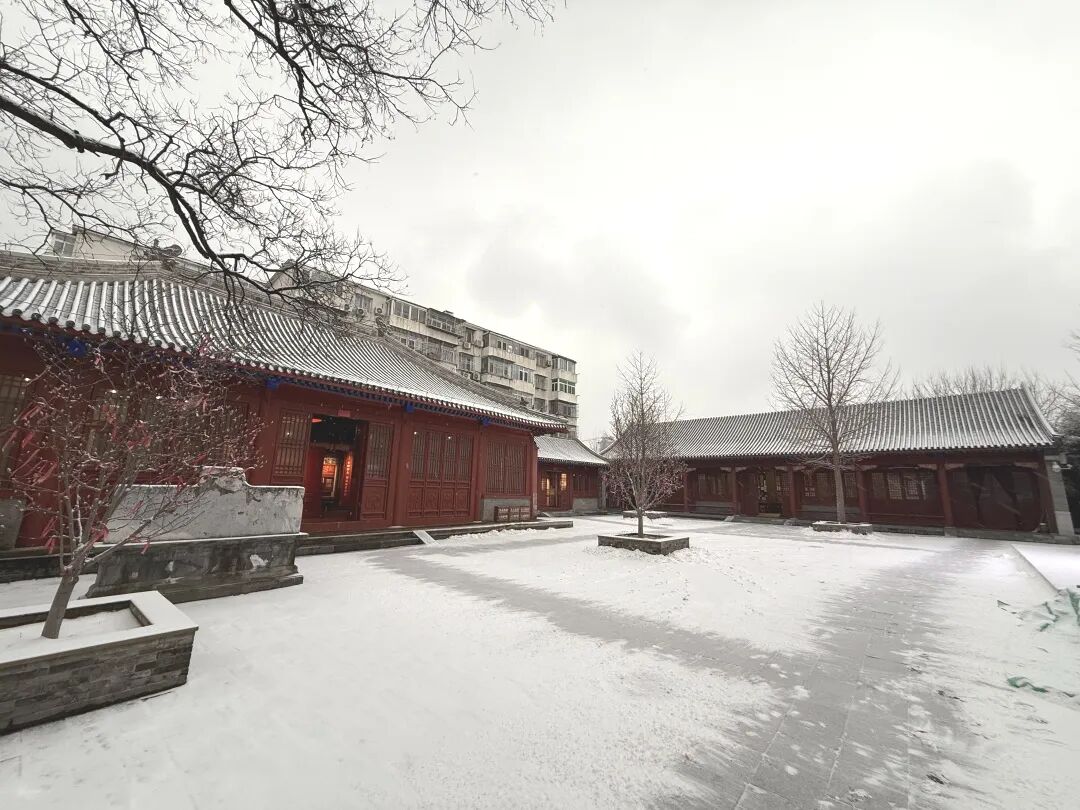 颐和园益寿堂坐落于万寿山东麓,1949年3月25日晚,毛泽东等中央领导同志曾在这里宴请赶赴北平的各民主党派负责人和无党派民主人士代表,以诚相待,共商国是,书写了进京“赶考”的重要一笔。一场初雪过后,这座古朴院落便成了水墨丹青里的景致。附近的谐趣园与后溪河冰面如镜,似在轻声诉说过往的岁月。