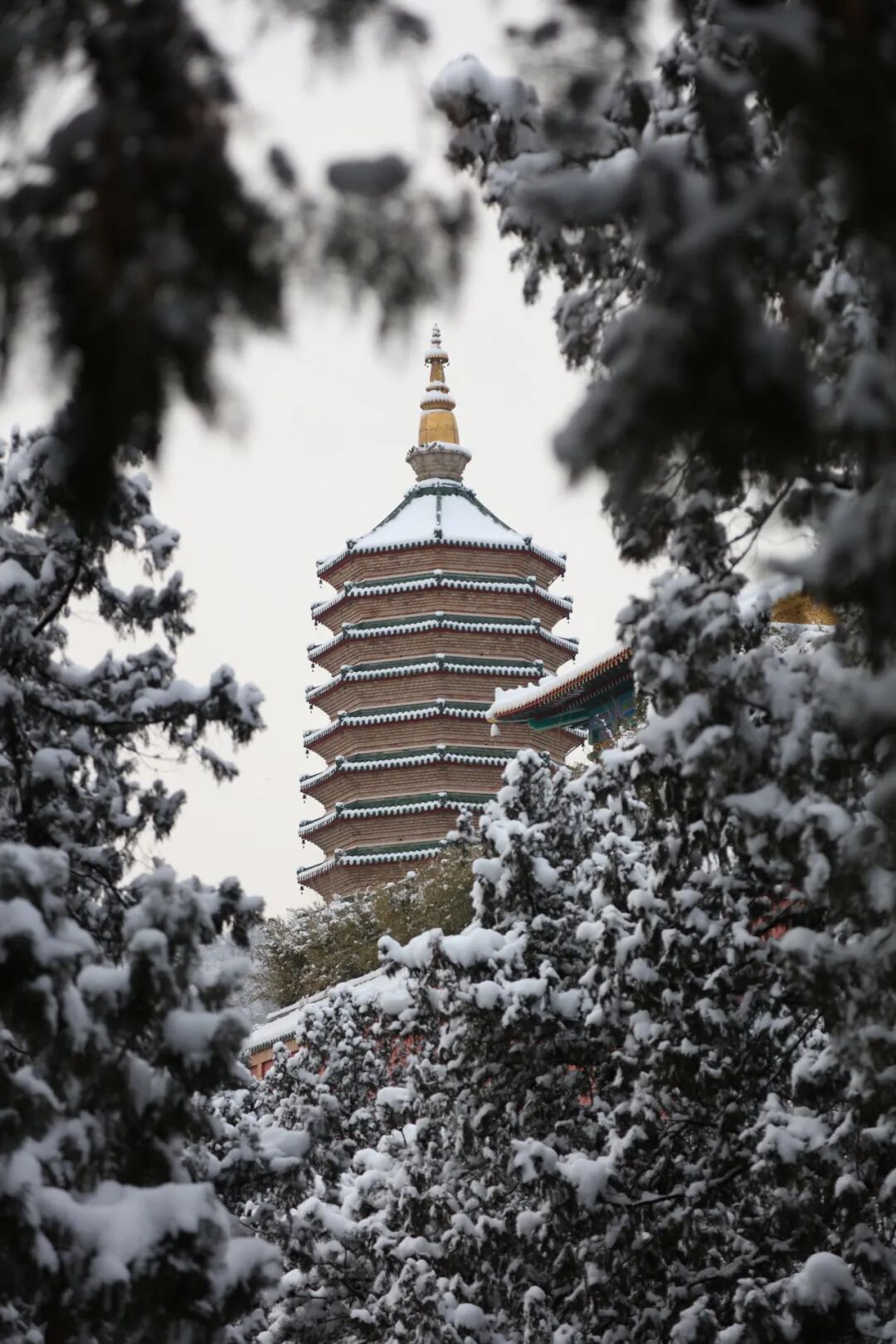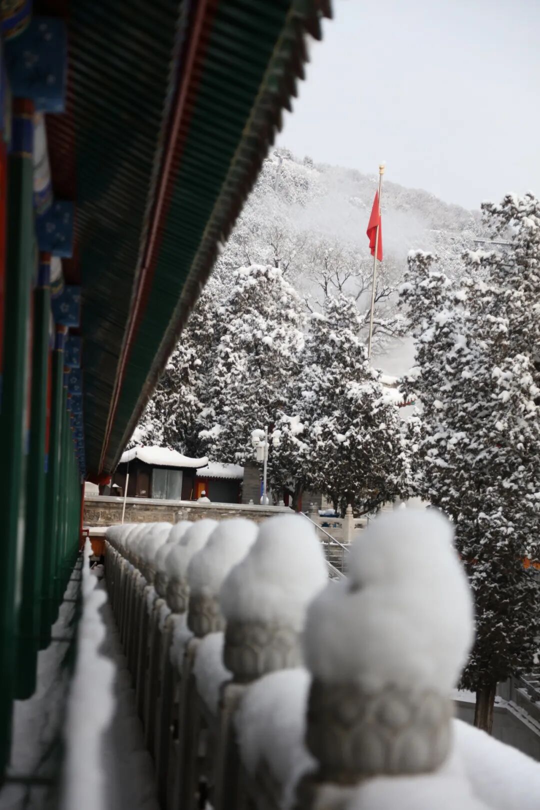 西山八大处长安寺、灵光寺曾是中央军委三局驻地旧址,是中共中央、中央军委的通信中枢,为渡江战役、继续指挥解放全中国、筹备新政协、开国大典等作出了不可磨灭的通信保障。深冬雪后,这片承载着红色记忆的土地化作一幅静谧圣洁的长卷:长安寺内外,百年古树挂满雪绒,为古刹平添几分庄严与肃穆;灵光寺畔,白雪如毯,与禅音钟声相映,绘就一幅清寂安然的冬雪禅意图。