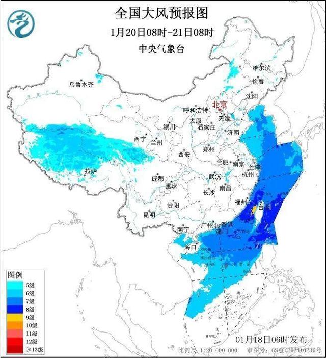 综合中央气象台及各地大风预报预警信息:黄海大部海域、东海北部海域:18日,风力5~6级、阵风7级;19日,将增强至6~7级、阵风8级。20日起继续增强至7-8级、阵风9-10级。风向偏北到东北。东海南部海域:18日,风力5~6级、阵风7级;19日,将显著增强至7~8级、阵风9级。20日起,继续增强至7-8级、阵风9-10级。风向偏北到东北。台湾海峡:18日,风力6~7级、阵风8级;19日,将继续增强至8-9级、阵风10级。部分水域20日起,继续增强至9级、阵风10-11级。风向偏北到东北。