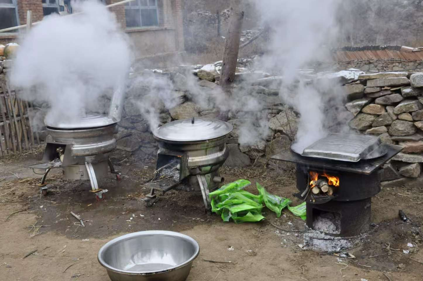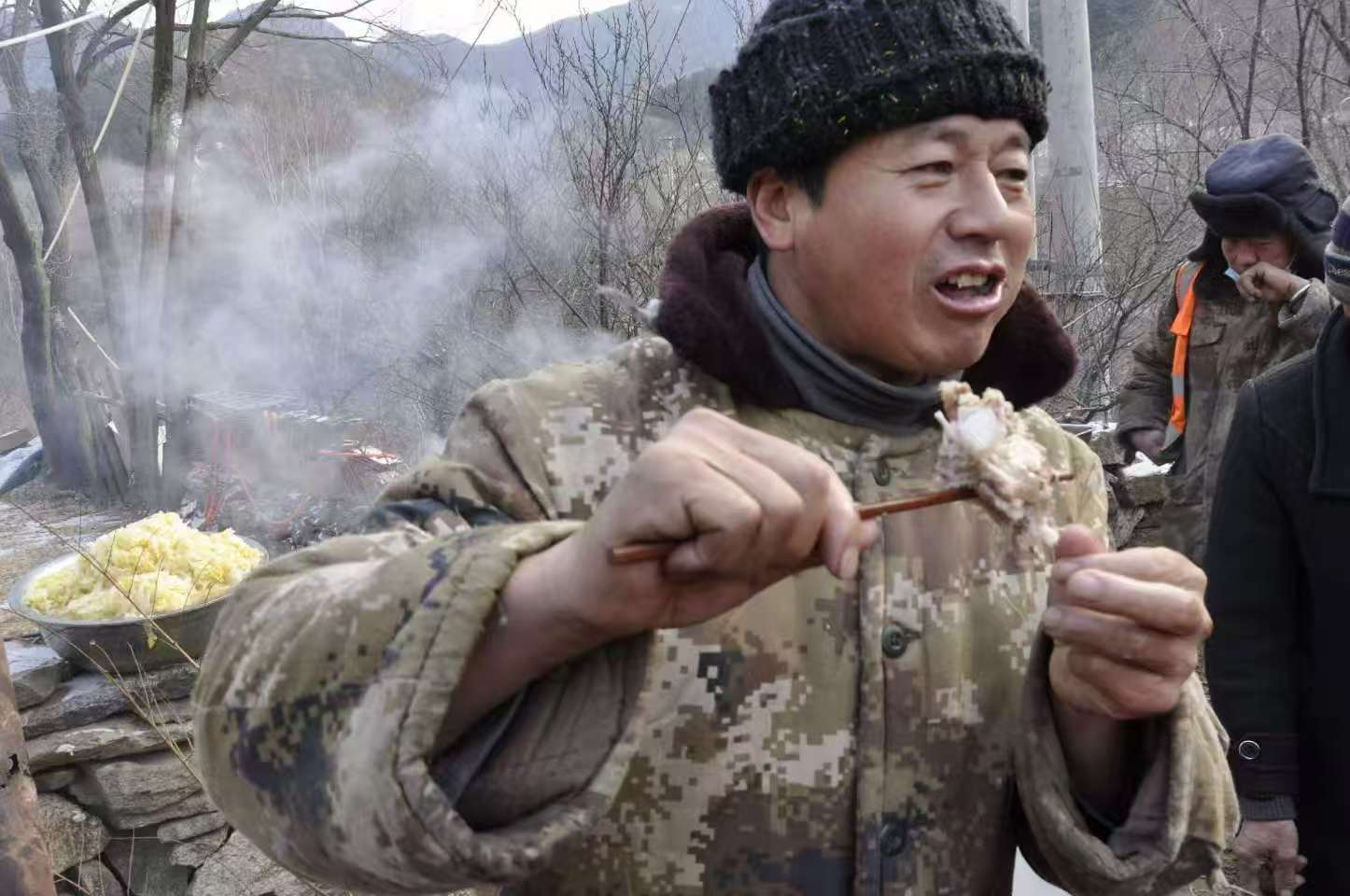 消息通过社交平台传播开来,自愿前来帮忙的志愿者多达八十余人,他们有的是同村的乡亲,有的是从外地赶来的热心网友。从清晨开始,山沟里就忙碌起来:搭建灶台、劈柴生火、处理年猪、准备各式食材。柴火灶映红了忙碌的身影,炊烟袅袅升起,空气中渐渐弥漫开腊味的醇香与炖肉的浓香。虽然天气寒冷,但现场却是一片热火朝天。到了中午一点多,宴席正式开席。原本宁静的山沟涌入了五百多位宾客和网友,除了本地乡邻,大部分都是专程从各地赶来的忠实粉丝,天津八人开车三个多小时,承德县一家二个大人三个孩子最小孩子七个月,现场画面实在感人。大家围坐在临时搭起的桌棚里有条不紊,有说有笑,气氛非常热烈。