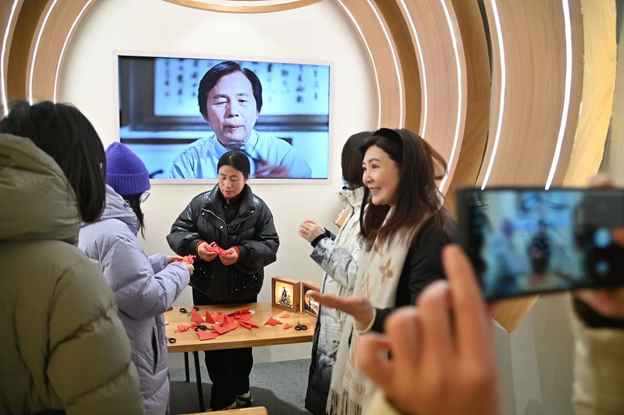 徽州书屋内古色古香,徽墨、歙砚、宣纸、宣笔,诉说着徽州文脉的源远流长。观众可体验虚拟书法,临摹《兰亭集序》等经典碑帖,更有非遗传承人现场演绎。