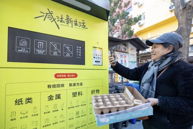 智能回收箱成为居民分类投放的“好帮手”。街道依托智能回收箱与全流程循环体系,对纸类、金属、塑料、织物四大品类进行24小时开放式回收。来到智能回收箱前,居民只需用手机扫码,箱门便自动开启,投递完成后,收益实时到账。“以前旧报纸、塑料瓶攒一堆,得专门找时间卖给废品站,现在下楼顺手就能投,十分方便。”社区居民张阿姨一边扫码投递一边说道。此外,西长安街街道还在辖区设置了垃圾分类驿站,开通“分类指导+灵活回收”双重服务。相关负责人介绍,“驿站内配备专职工作人员,不仅为居民提供分类咨询和实操指导,还实行‘值物现结、低值物积分兑换’的激励机制。”