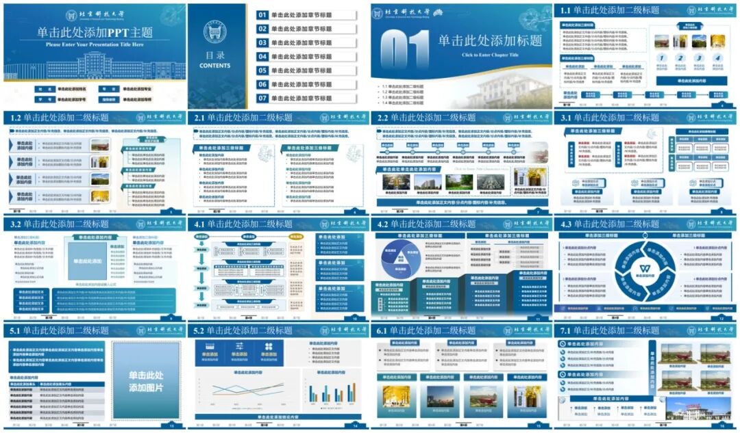 本PPT模板以“科技蓝”为主色调,结合若隐若现的校园符号,营造出冷静深远的视觉层次,适用于各类科研汇报场景。