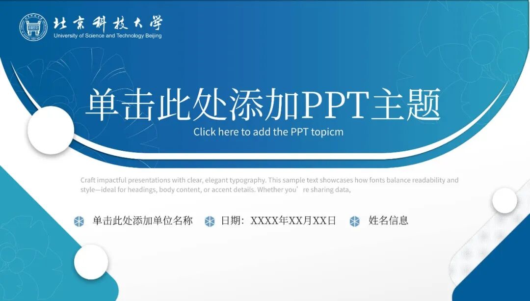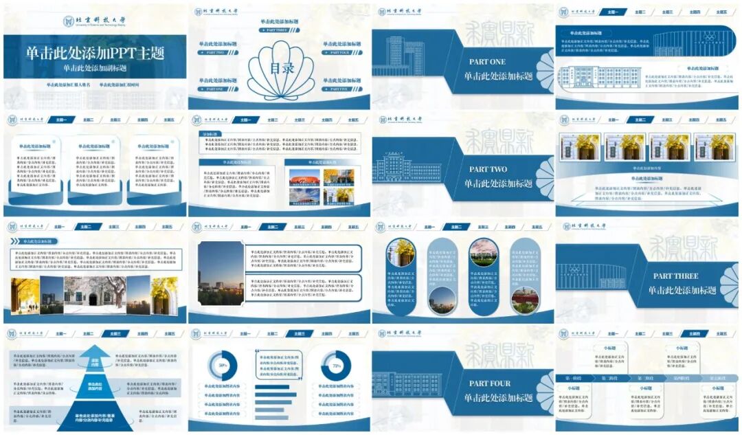 ③进入北京科技大学融合门户(i.ustb.edu.cn),点击资源-设计素材-PPT大赛获奖设计模板,即可获取精选作品模板。