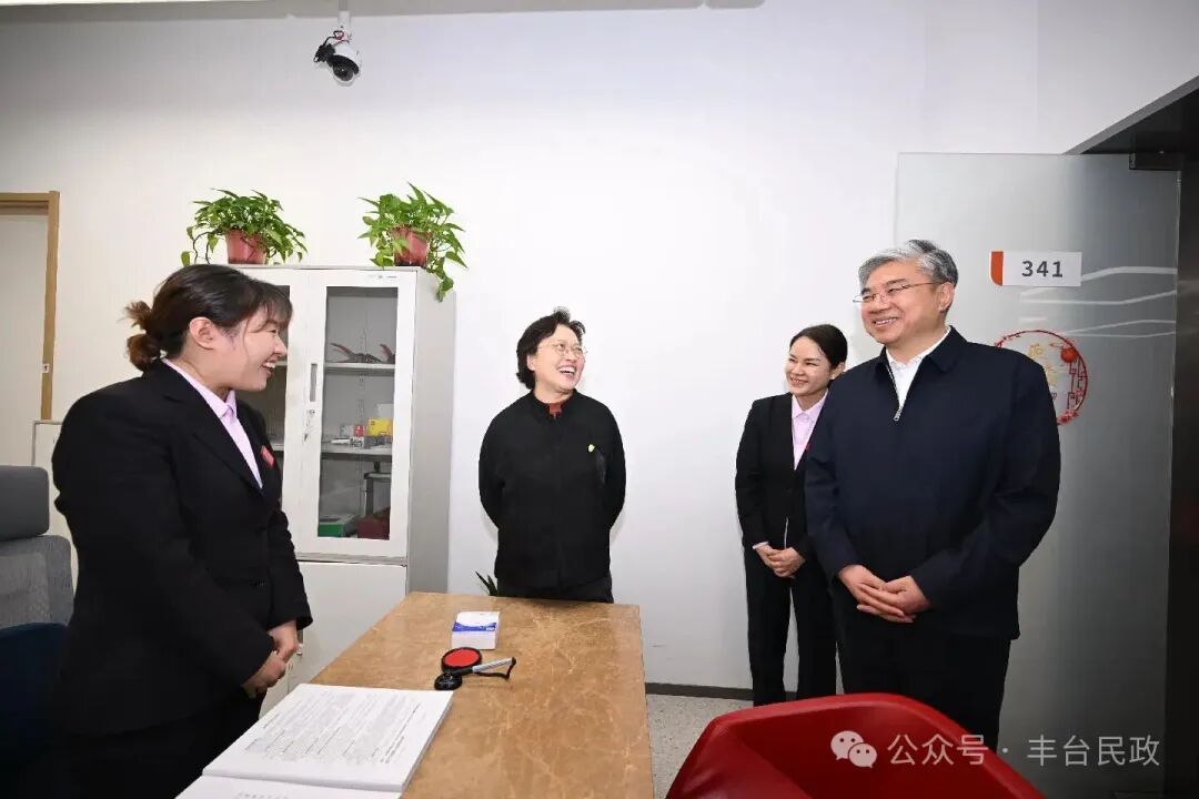 全国妇联副主席黄晓薇、北京市副市长唐文弘和市妇联主席张雅君等一行人组成的调研团,赴丰台区政务服务大厅三层区婚姻登记事务中心开展调研交流活动。丰台区副区长赵春丽、区妇联主席刘萌萌、区民政局局长毕博、区政务服务和数据管理局局长刘楣、区卫健委副主任艾颖、区妇幼保健院院长陈应军一同参与了调研活动。