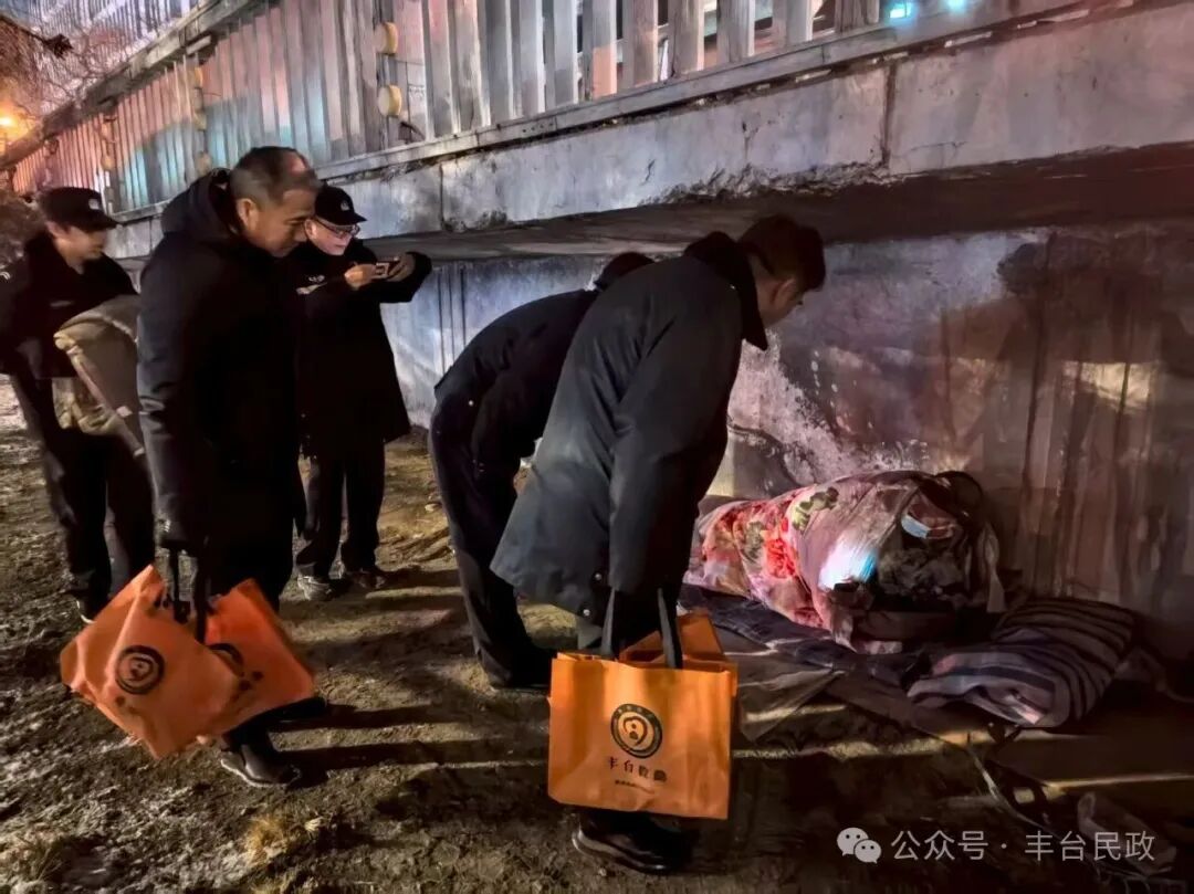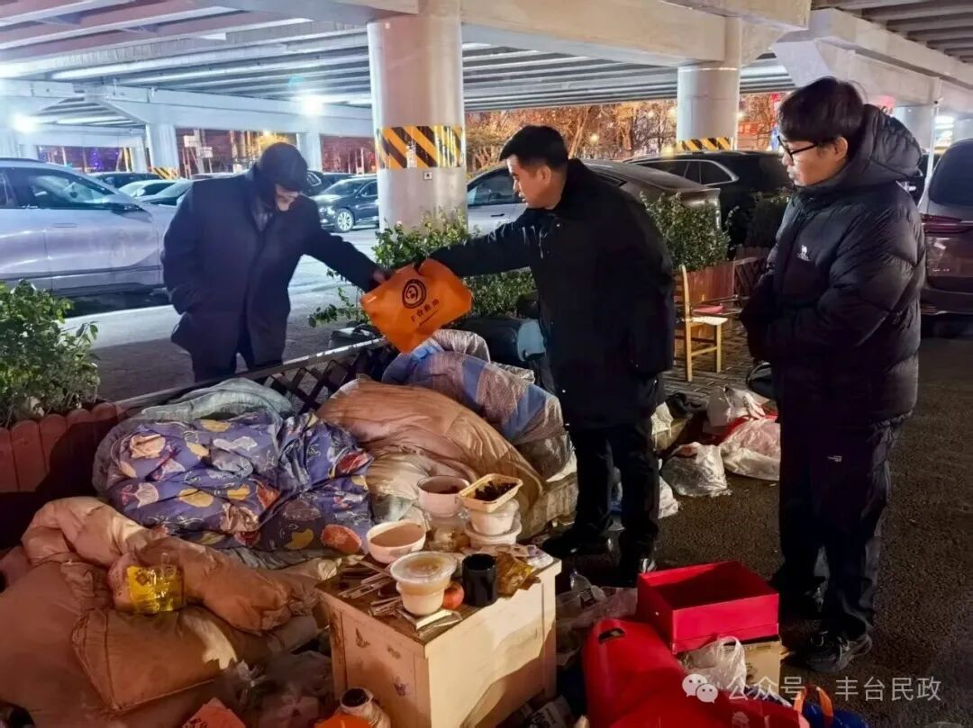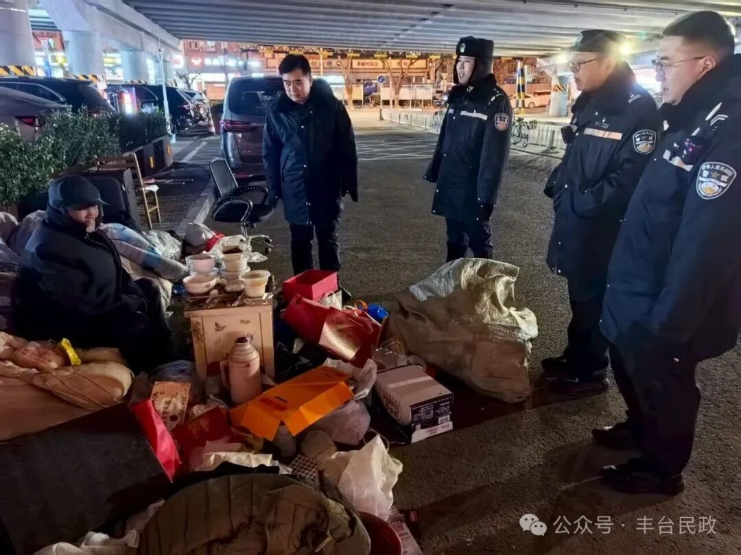 18日晚20时,室外温度已降至零下10摄氏度,丰台区救助管理站牵头,联合区公安分局治安支队及六里桥街道、太平桥街道、右安门街道等多个属地街道和派出所,组成专项救助工作组,形成了“民政牵头、公安协同、街道联动”的高效工作机制。各部门各司其职、紧密配合:公安机关发挥巡逻防控优势,精准锁定重点区域;街道社区工作人员深入背街小巷进行摸排;救助站工作人员则携带棉衣、棉被、方便食品、热水等御寒物资和救助引导卡,现场开展评估、劝导和救助服务。