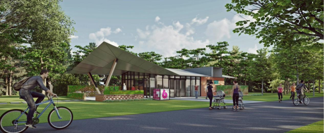 趣开森段落也是绿道重点打造的核心区域,北起卢沟新桥,南至紫谷伊甸园,依托绿堤公园丰富的生态资源特色,以多样化的林下休闲、自然教育为核心活动内容,重点规划打造3条林下步行环线、1条滨水骑行支线,构建功能完善、体验丰富的生态休闲空间。其中利用现状碎石路改造为5米宽绿道骑行主线,打造兼具生态与休闲功能的滨水趣骑路线。该处将新建一座驿站“千秋驿”,采用可登顶二层的台地坡屋顶搭配观景平台的结构,将其打造为集休憩、科普、教育于一体的生态文明教育基地,进一步强化区域生态文化传播功能。