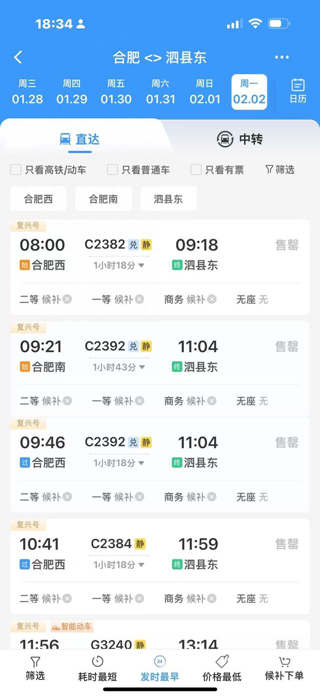 省内短途运输方面,不同方向呈现明显差异。合肥前往泗县方向的车票已经售罄,前往阜阳、亳州方向的车票较为紧张。而前往六安、芜湖、安庆方向尚有余票,但数量不多。前往黄山等方向的车票则相对充裕。