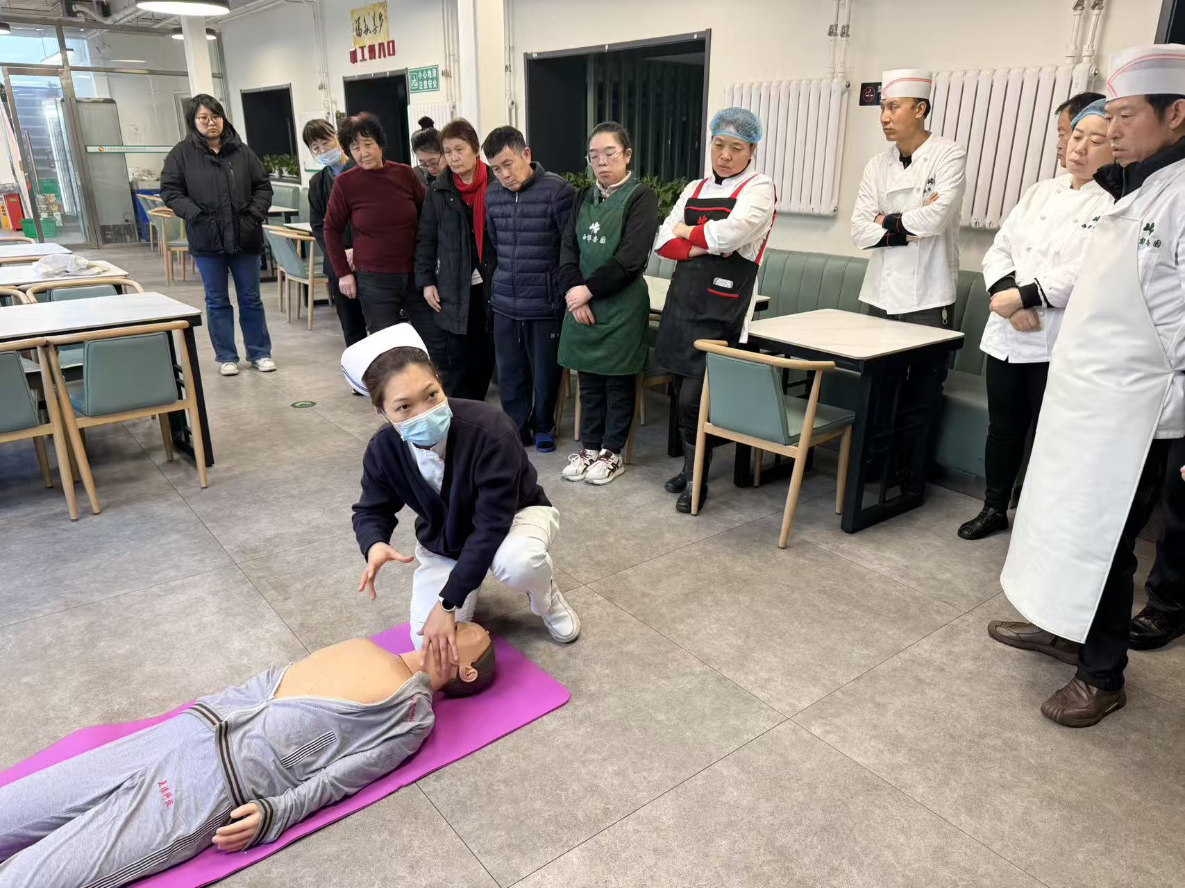“按压力度要均匀,深度保持在5到6厘米”“清理口腔一定要侧头进行……”在实操演练环节,餐厅工作人员轮流上场,在医护人员的指导下进行模拟练习。医生耐心纠正每个人的动作细节,确保手法准确、力度到位。大家学习热情高涨,反复练习,直到熟练掌握。“在我们这儿吃饭的大多是老年人,万一发生意外,今天学到的这些真能派上用场。”一位参与培训的工作人员感慨道,“心里有底,手上不慌,工作起来安全感也更足了。”