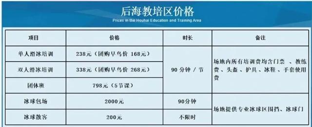 后海综合区:与前海冰场统一定价100元/人,周末及节假日同价,实现两区游玩体验的无缝衔接;