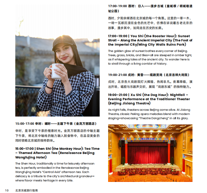 Dongcheng is where imperial heritage, revolutionary history, traditional Beijing culture, and innovative contemporary expressions converge. Libraries, traditional opera, intangible cultural heritage workshops, and museum exhibitions form a poetic cultural sanctuary. As the twelve hours of the day unfold, hutong breezes brush against vermilion walls and golden tiles, while modern skyscraper lights dot the ancient city—a captivating tableau awaiting global travelers to experience authentic Beijing's elegance and charm.