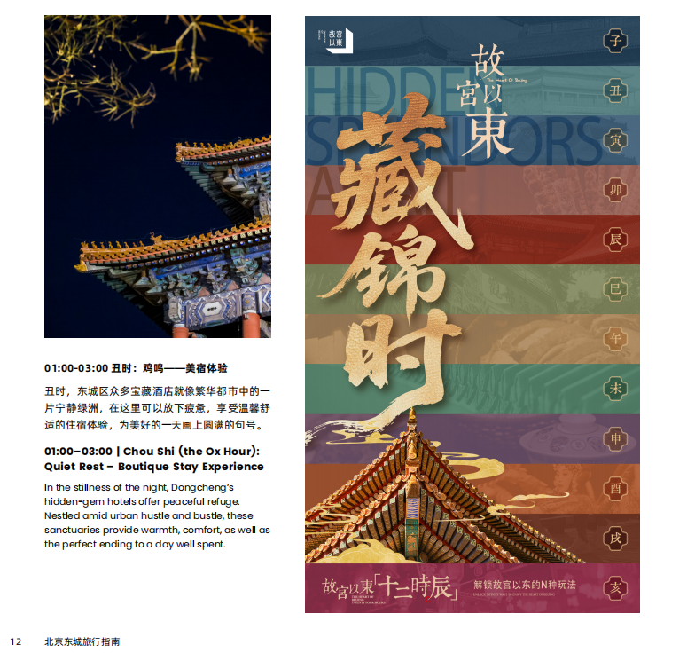 古都文化、红色文化、京味文化与创新文化在此共生共荣,图书馆、戏曲、非遗技艺与博物馆展览构筑起诗意文化栖息地。十二时辰流转中,胡同风拂过朱墙黄瓦,高楼灯火点缀古城,故宫以东的迷人画卷正静待全球游客邂逅,感受地道北京的格调与韵味。
