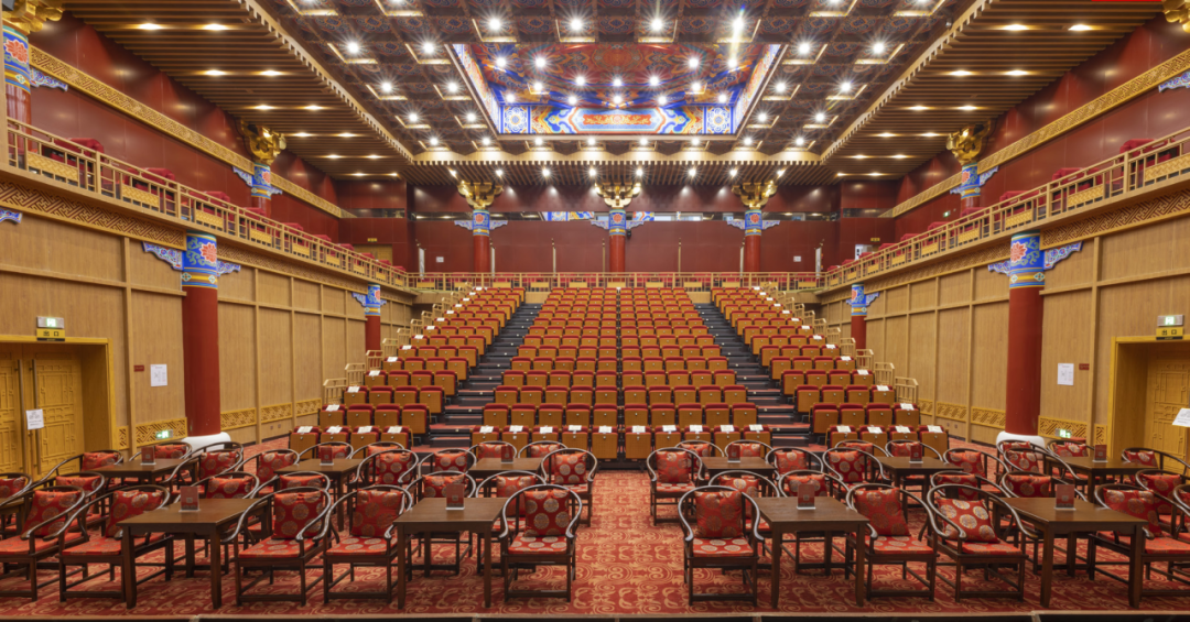 The century-old Beijing Jixiang Theatre, an "aerial theatre," combines its classically elegant hand-painted caisson ceiling with state-of-the-art acoustics and lighting, immersing audiences in the authentic Beijing charm of traditional opera.