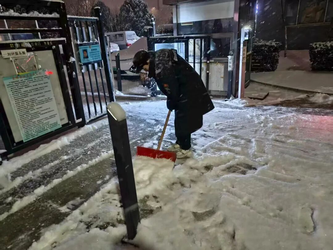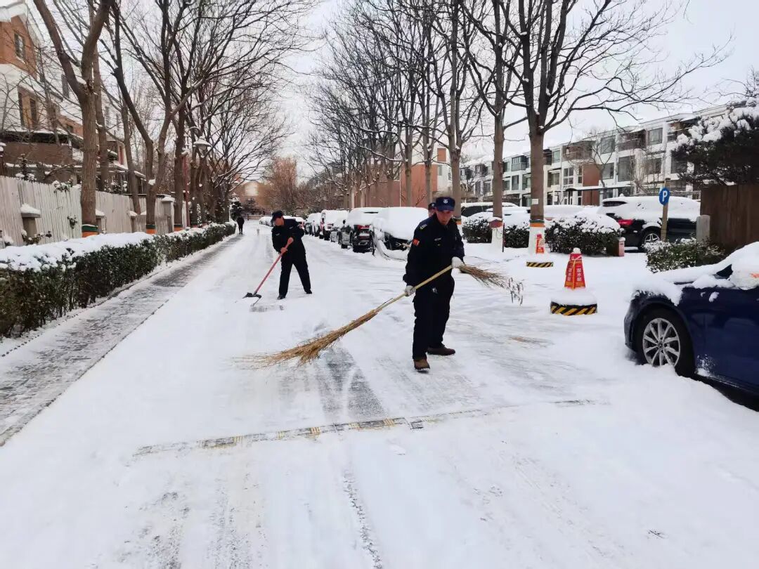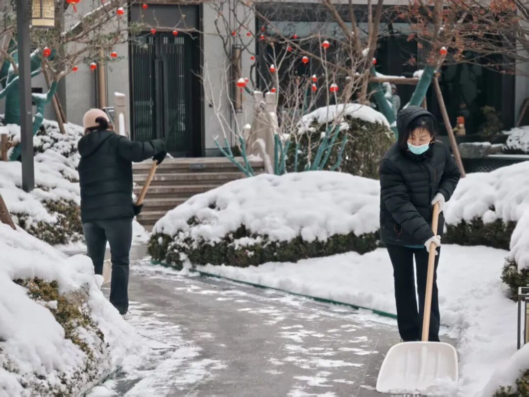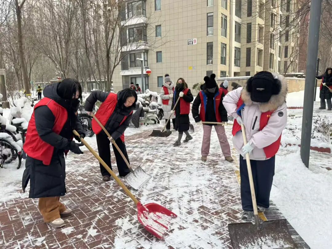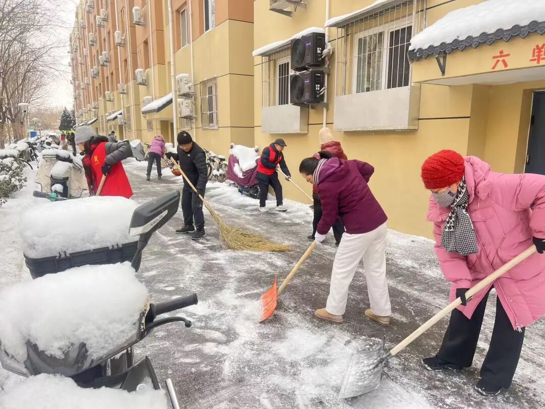 与此同时,各社区迅速集结“两委”干部、党员、物业工作人员、志愿者等多方力量,以居民出行必经的主干道、人行道、单元楼门口、地下车库出入口为重点,开展高效扫雪铲冰作业。大家分工协作、干劲十足,不少居民自发加入清扫队伍。