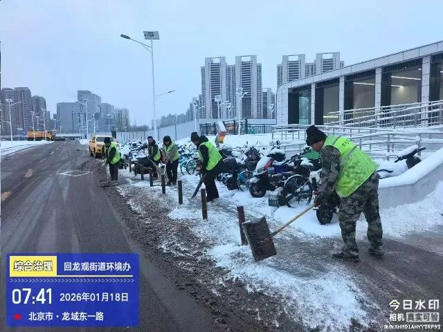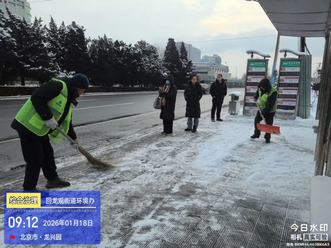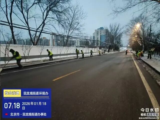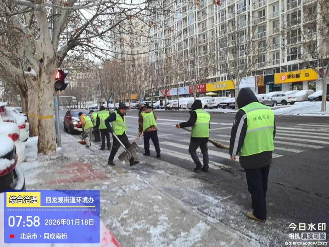 1月17日,2026年北京首场降雪如期而至,为保障辖区居民安全出行、正常生活,回龙观街道视雪情为命令,提前谋划、提前通知,迅速响应市委市政府、区委区政府扫雪铲冰指挥部的统一安排部署,以“保畅通、护民生、守环境”为核心,积极应对本次降雪。