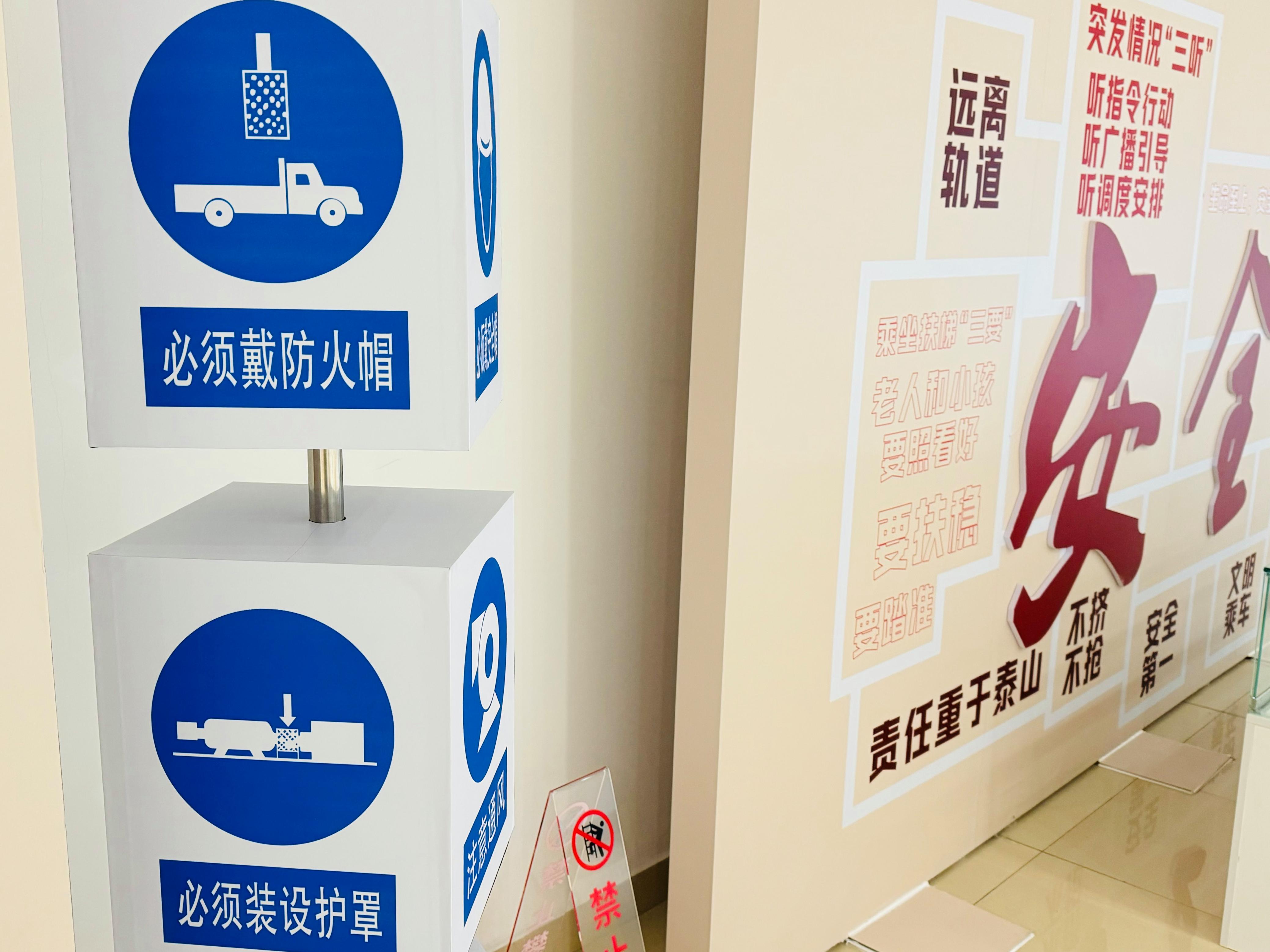 宣传角由主题展板与两款互动装置构成。展板突出“安全是最近的路线”标语,集中呈现突发情况“三听”、消防安全“三会”等口诀化安全知识,便于记忆。互动装置则通过立体旋转展示等方式,生动传递消防、应急避险等出行常见风险点与应对技巧,吸引不少旅客驻足体验。旅客李女士表示:“装置很直观,安全知识通过口诀更好记了。”