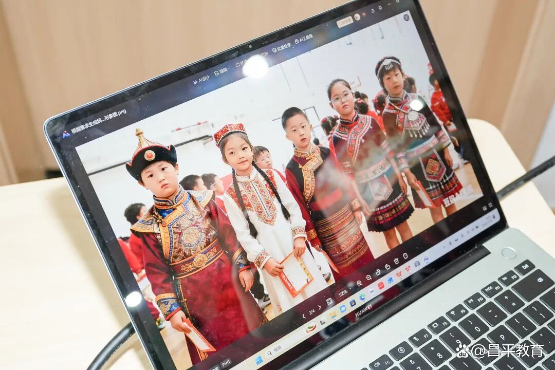 北京一零一中昌平实验学校设立了极具未来感的“AI民族服饰镜像馆”。通过AI图像生成技术,学生的形象与绚丽的民族服饰元素在数字世界中智慧融合,瞬间生成专属的“民族风情”数字肖像。学生成为文化交融的主动创造者,亲手生成一份承载传统智慧与个人印记的独特数字藏品。