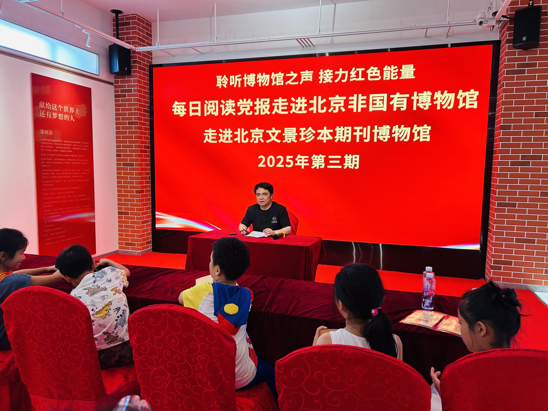 为持续推动党建与文化传承深度融合,助力北京“博物馆之城”建设,2025年,在北京市文物局指导下,北京日报报业集团读者俱乐部与北京非国有博物馆“博物馆之城建设”临时党支部联合主办了“聆听博物馆之声 接力红色能量——每日阅读党报走进北京非国有博物馆”年度系列活动。活动贯穿全年,共举办10期,先后走进10家各具特色的非国有博物馆。每期活动由该馆负责人担任领读人,阅读当日《北京日报》重点内容并分享心得,同时邀请“北京晚报读者俱乐部小读者团”代表参与,通过共读党报、专业讲解与互动观展,增进公众特别是青少年对传统文化与红色历史的认知。