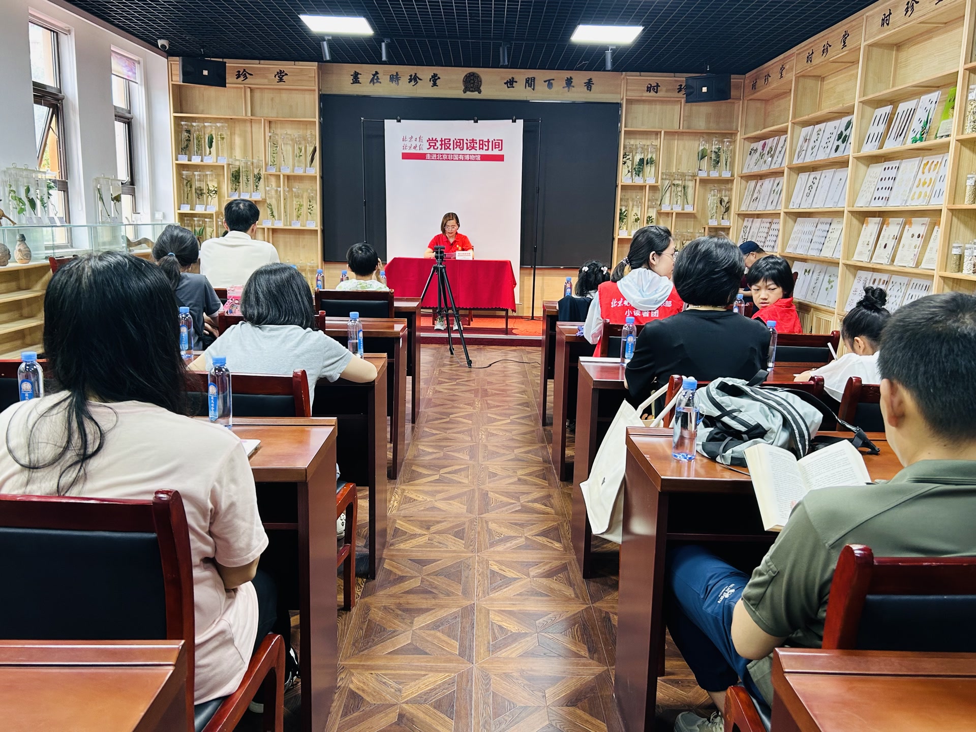 6月14日,活动走进北京东璧堂中医药博物馆。副馆长刘瑞英担任领读人,朗读党报并分享学习心得与建馆历程。小读者们在讲解员带领下参观馆藏,通过药材标本与历史文物了解中医药发展脉络,并参与互动体验。活动尾声,博物馆向参与者赠送了传统中药香囊。