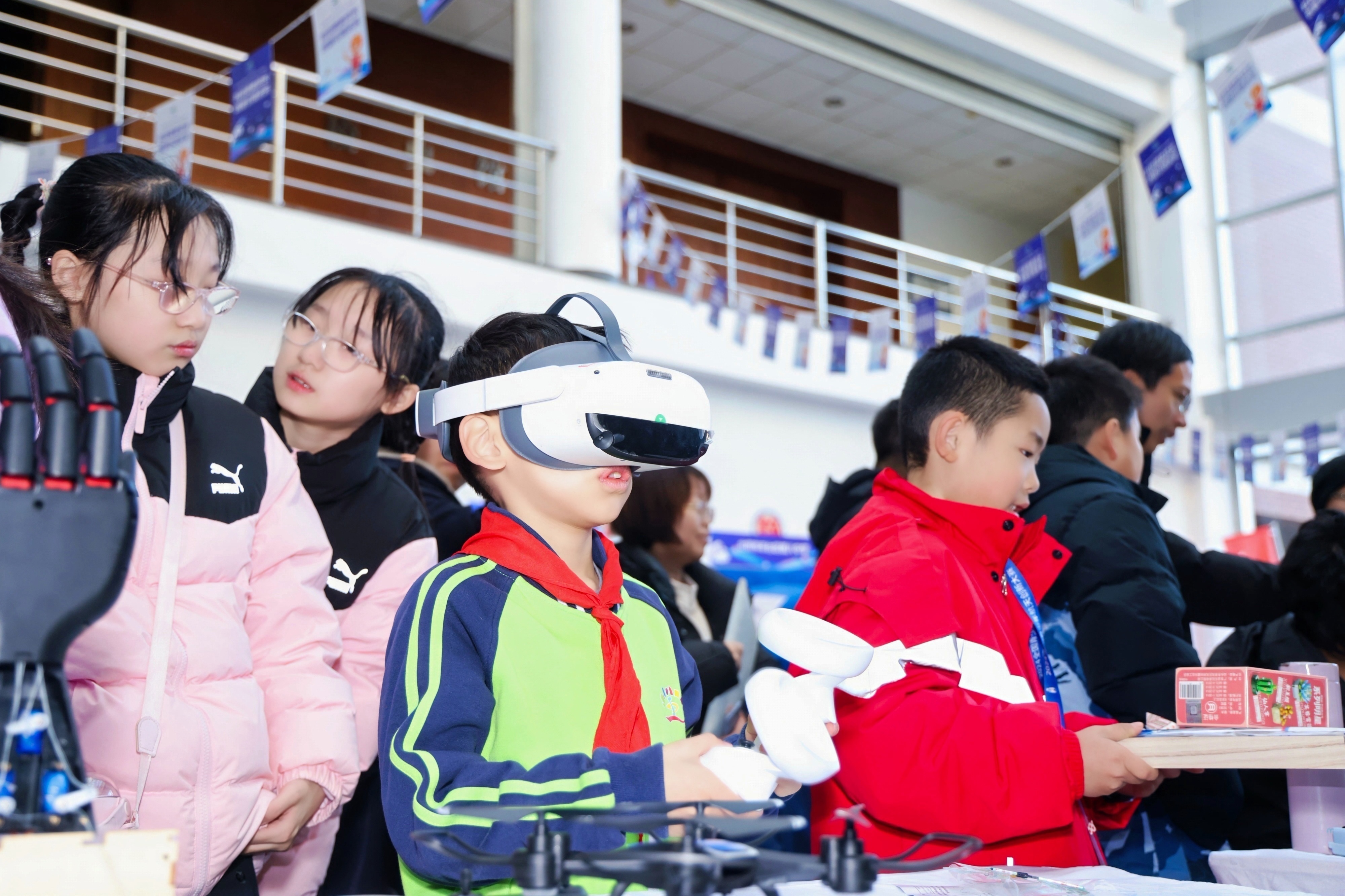 本届科技节闭幕式同时开放科技嘉年华活动,百余名学生通过七大主题的互动装置与游戏,在“学、展、玩”中沉浸体验了区域科技教育成果。
