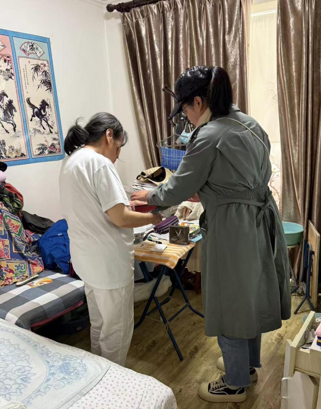 一次走访中,社区工作者了解到刘阿姨的处境,便主动照料起她的生活起居。她们化身刘阿姨的“专职跑腿员”,每月定时到银行代取生活费,辗转各个窗口缴纳各项费用。她们还变身“应急维修员”,小到水龙头、莲蓬头、顶灯损坏,大到壁挂炉故障,总能第一时间响应。社区组织免费体检时,几人还会提前约定时间,全程陪同照料,细致记录医嘱并通过写字板告知老人。
