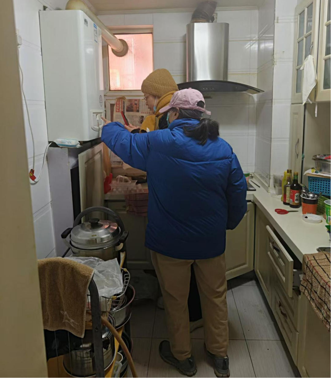 去年冬天,刘阿姨家中壁挂炉突然故障,室内温度骤降。几人接到消息后立刻赶到,见老人面露焦急,她们迅速在写字板上写下“别着急,我们来解决”,一边轮流安抚老人情绪,一边分工联系维修师傅远程指导、在设备前反复调试,直至暖气重新运转,屋内恢复暖意。