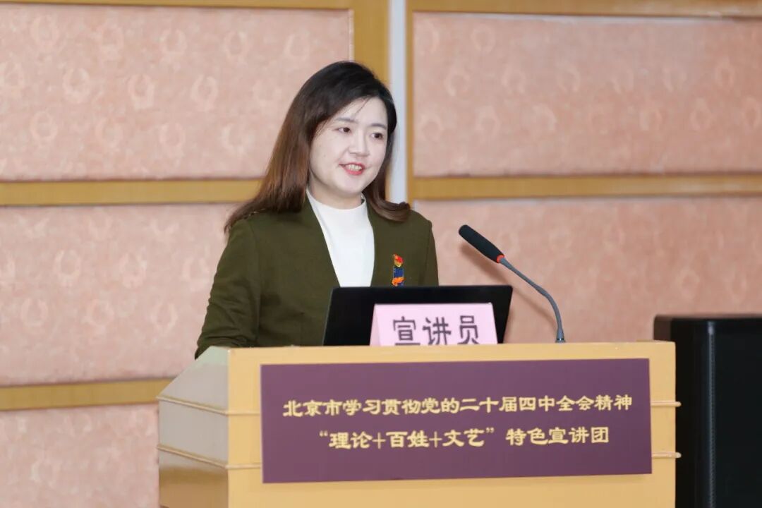 据悉,北京市学习贯彻党的二十届四中全会精神“理论+百姓+文艺”特色宣讲团由市委宣传部、市社会科学院(市委讲师团)联合组建,本轮巡讲是全市深入推进学习贯彻党的二十届四中全会精神第二阶段宣讲活动的重点工作,也是全市各区创新打造的新品牌。特色宣讲团紧紧围绕党的二十届四中全会精神和习近平总书记重要讲话精神,在理论宣讲过程中插入来自各行各业的感人故事和北京琴书、歌曲、诗朗诵、情景剧等文艺表演,将首都改革发展的鲜活场景转化为学思践悟的理论课堂,让群众听得进、能领会、可落实。