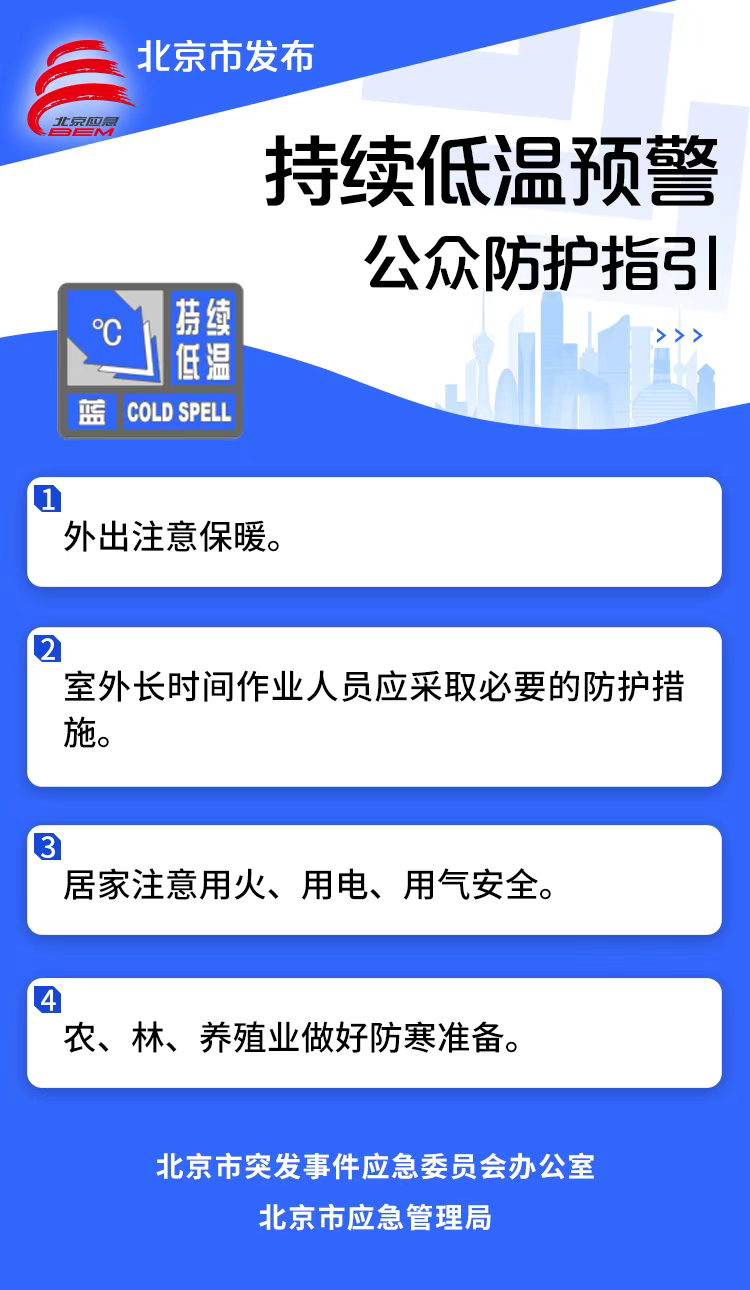 受冷空气影响,预计22日至23日西城区仍有持续低温天气,部分地区夜间最低气温将低于零下10℃,请注意防范。