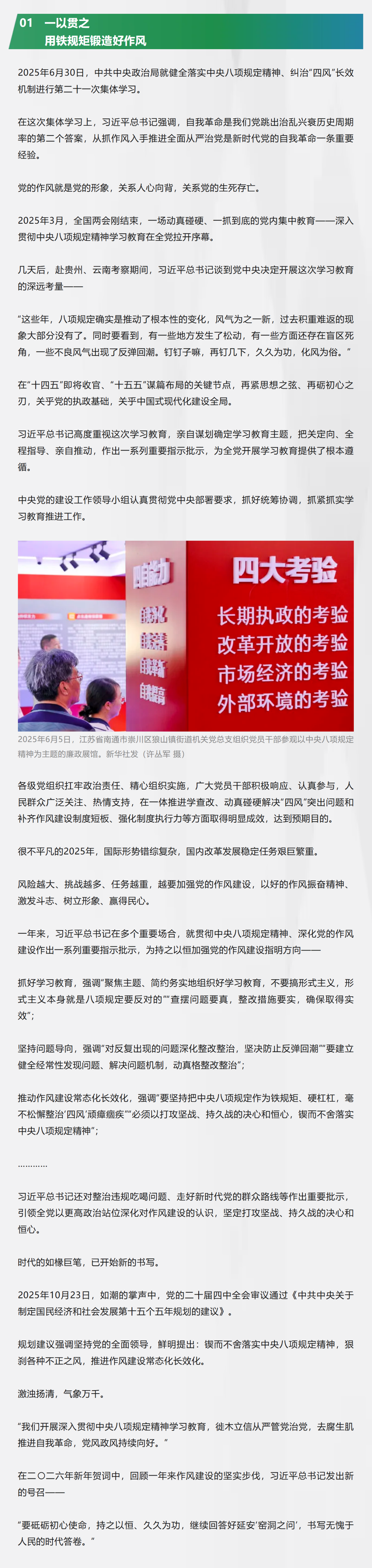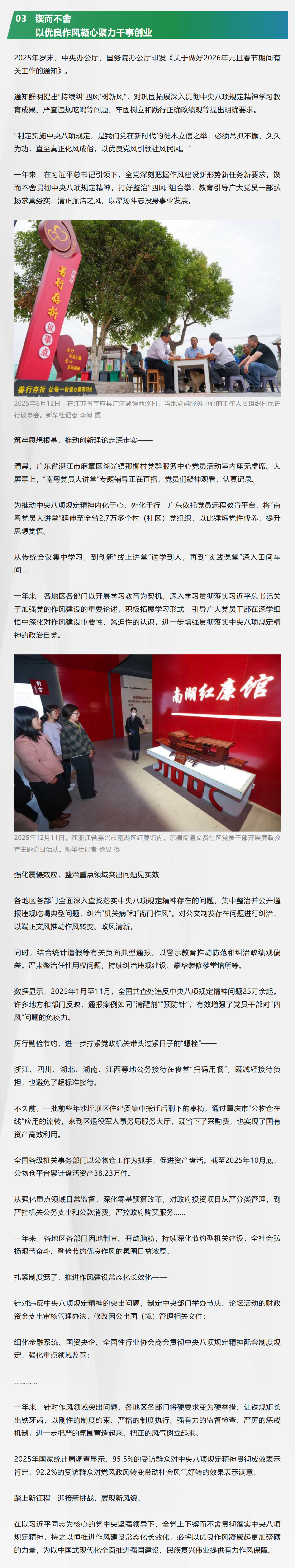 面对国内外形势深刻复杂的变化,以习近平同志为核心的党中央部署在全党开展深入贯彻中央八项规定精神学习教育,不断深化党的作风建设,让清风正气激荡神州大地,凝聚起团结奋斗、再创辉煌的磅礴力量。