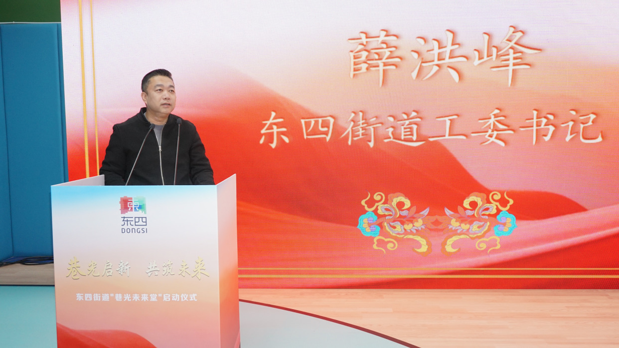 街道工委书记薛洪峰在讲话中指出,街道建设嵌入社区的功能性空间“巷光未来堂”,引入专业公司进行运营,提供适配性服务,推动“政府+公益+商业”的融合共生模式落地见效,是实现从“政府输血”到“自我造血”、从“短期项目”到“长效发展”根本性转变的重要举措。“巷光未来堂”将立足新时代背景,深化“央地协同、政企联动”,深入探索党建引领下历史文化街区治理现代化的社区公共服务供给新模式。以“融合”为先导,明晰公益服务与商业运营边界,探索并固化一套公益、商业融合发展的可持续运营管理模式,形成可复制、可推广的“东四经验”。以“共治”为关键,有效整合资源,强化联动、汇聚合力,让多元共治成为丰富服务内容、创新活动形式的不竭动力。以“服务”为根本,常态化、精准化开展文化传承、便民服务、邻里互助等活动,确保空间服务接地气、有温度、可持续,真正打造出全龄友好融合,社区活力迸发的优质综合空间。