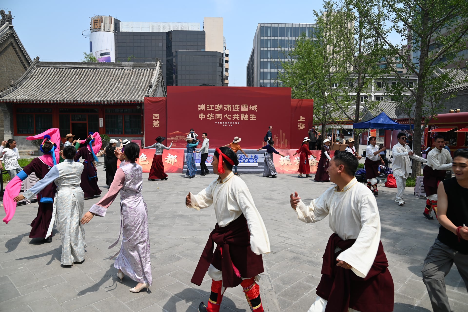 2025年,旧址东院中华优秀文化体验区河北、吉林、上海、西藏、广东、江西、黑龙江、江苏8个省份(自治区、直辖市)40余市(区)来此展演,先后组织34场文化体验活动,藏戏、唐卡、黄道婆纺织技艺、景德镇瓷器、八极拳、布糊画超240项跨越千里的文化瑰宝在这里汇聚交融,绘就出多彩的民族团结画卷。