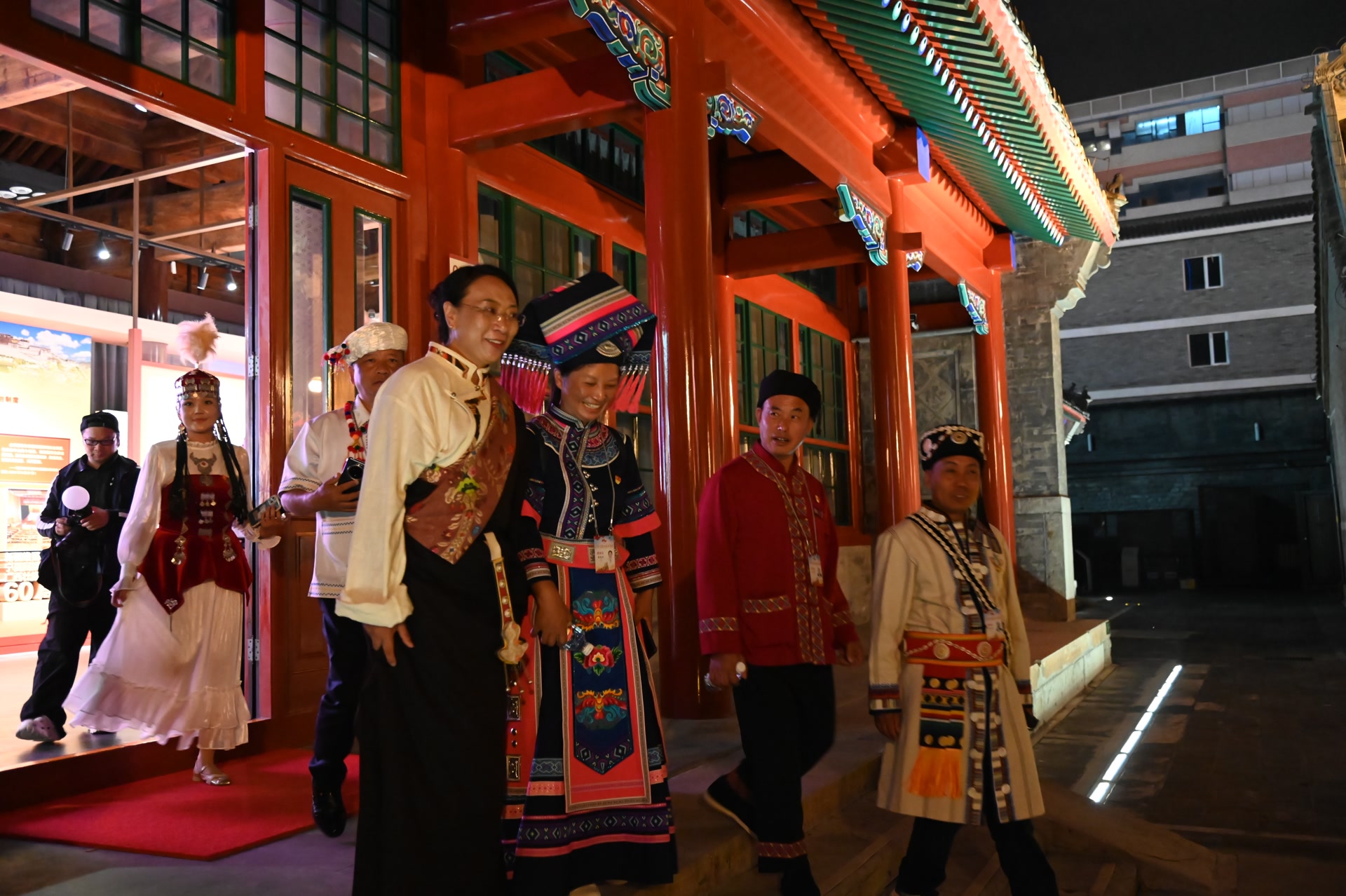 全国少数民族参观团观看文艺汇演,参观展览,体验传统非遗技艺。