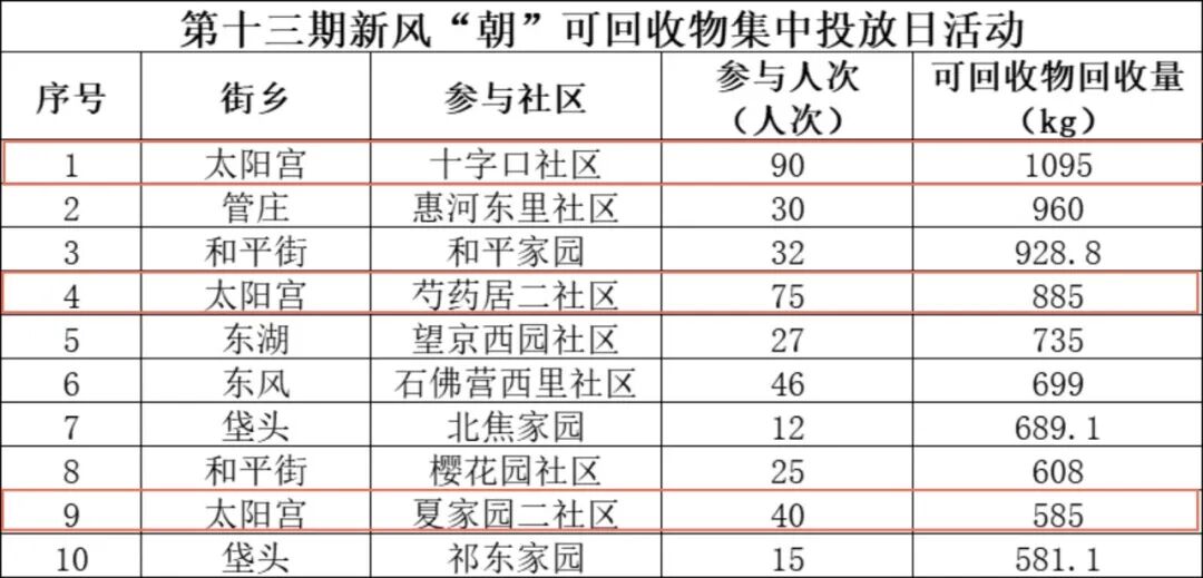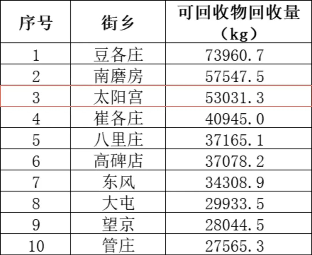 12月20日,在全区43个街乡的600余个点位的新风“朝”可回收物集中投放日活动中,太阳宫地区十字口社区、芍药居二社区、夏家园二社区三个社区可回收物量居全区Top1。