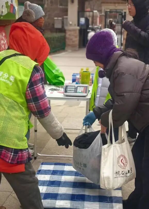 在各个点位,居民们提着早已分类整理好的可回收物,有序前来,工作人员和志愿者们忙碌而热情,称重、结算、兑换……寒风中的笑脸成了冬日里最暖的画面。